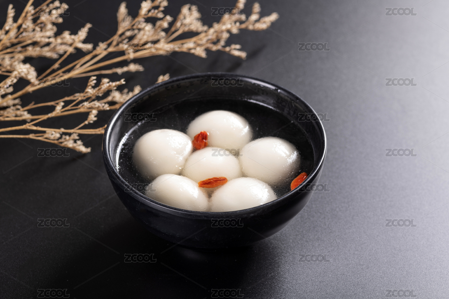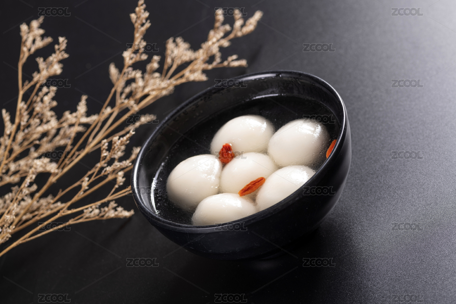 一碗汤圆特写黑色背景