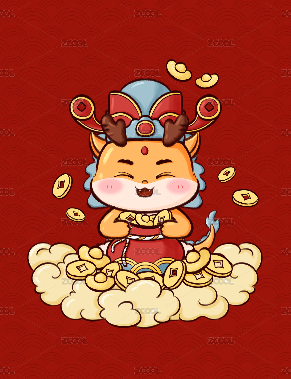 新年,龙年,灶神,灯笼,红色,喜庆,祥云,节日,庆祝