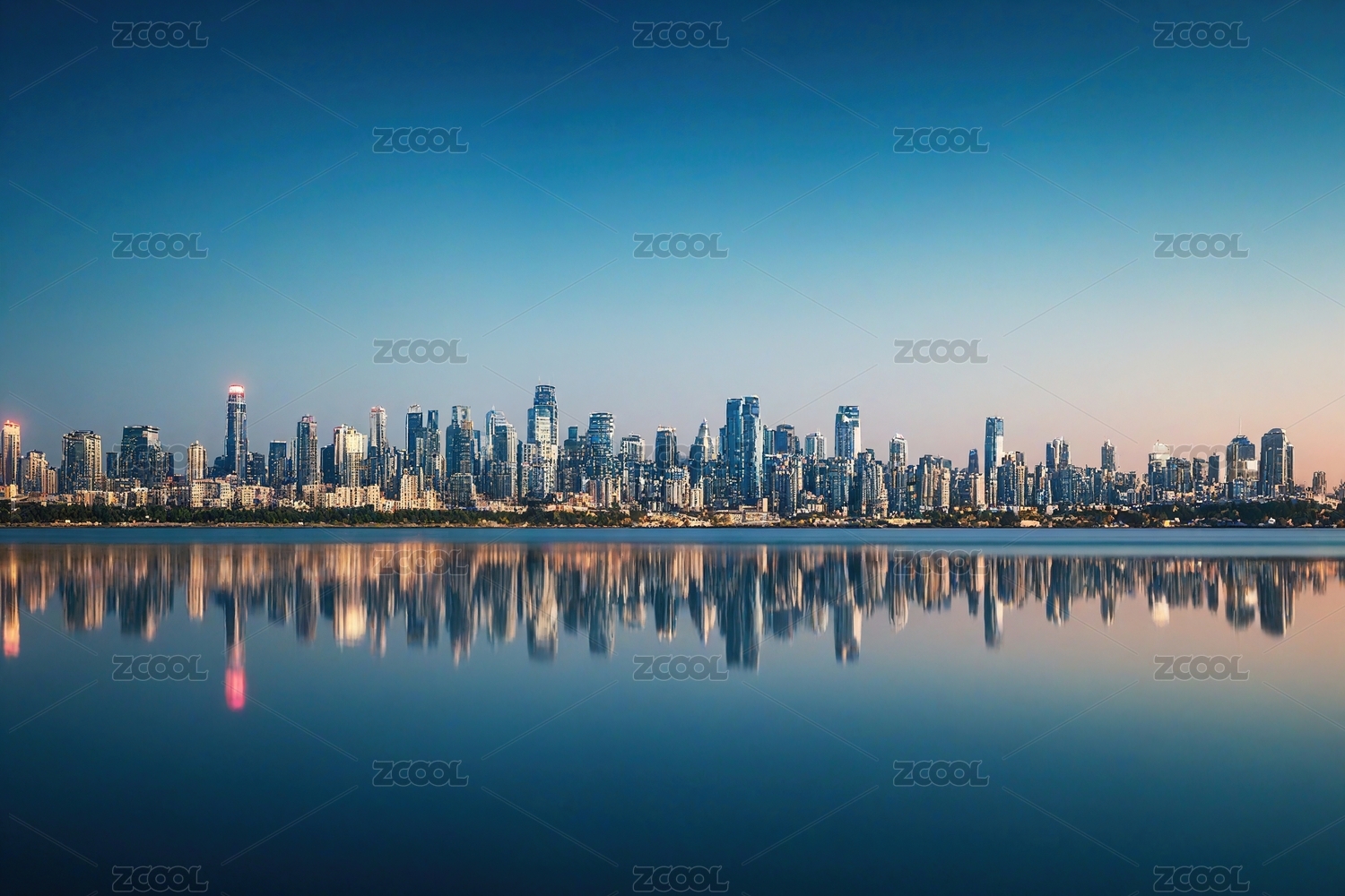 杭州城市天际线奥体杭州之门夜景火烧云对称