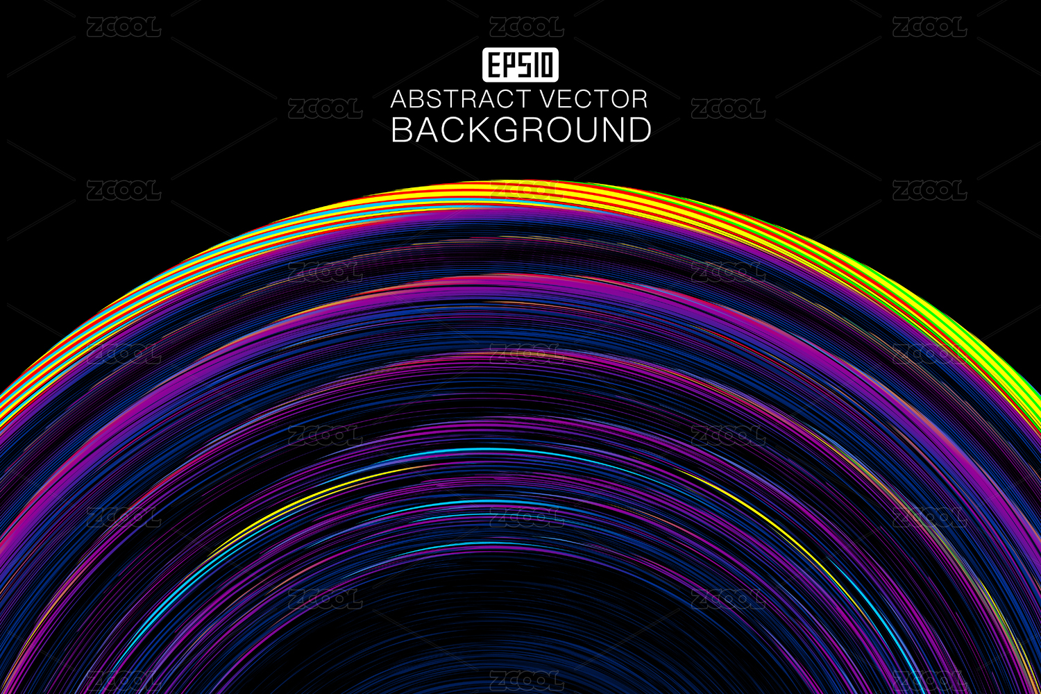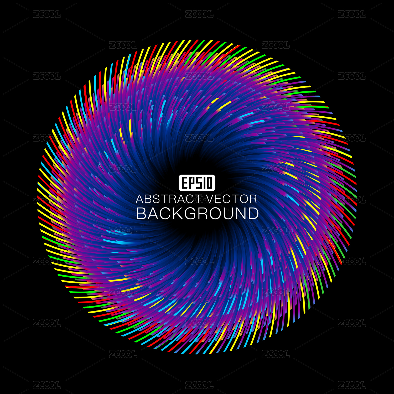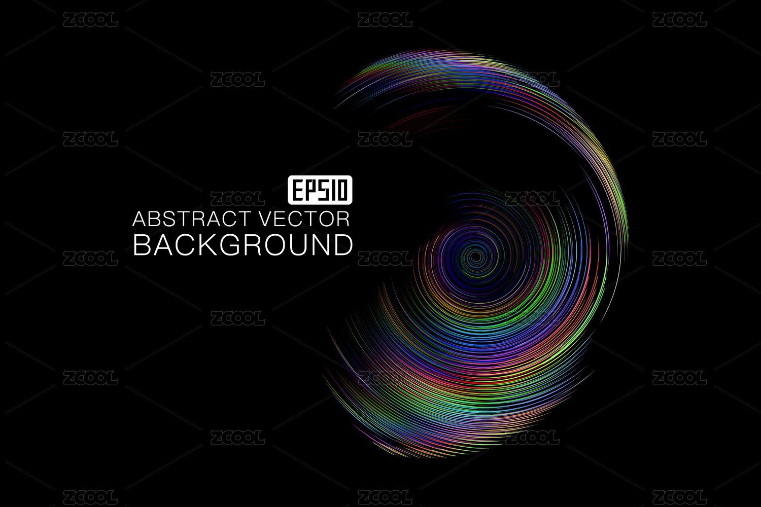 彩色曲线组成发光的螺旋光束抽象矢量背景