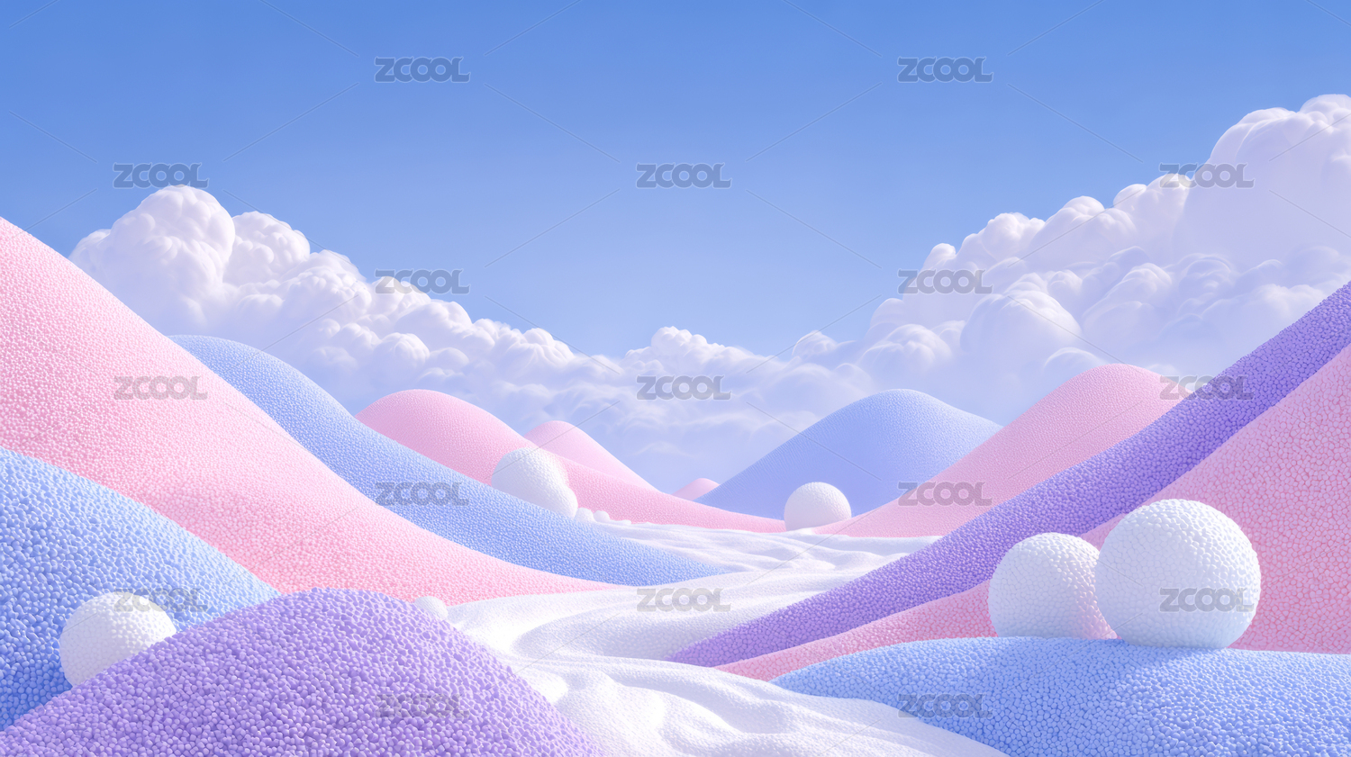 抽象羊毛毡毛绒毛线圆球织物3D立体插画