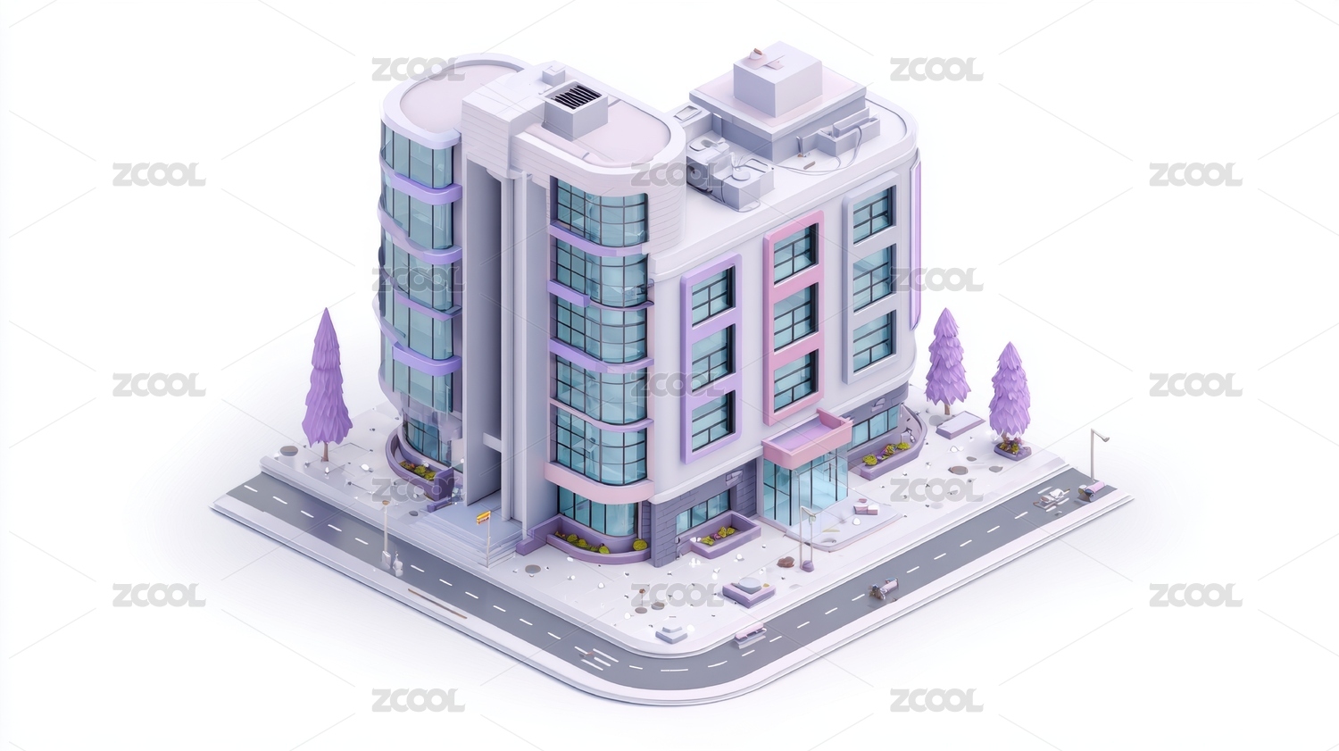 医院建筑的三维渲染场景插图