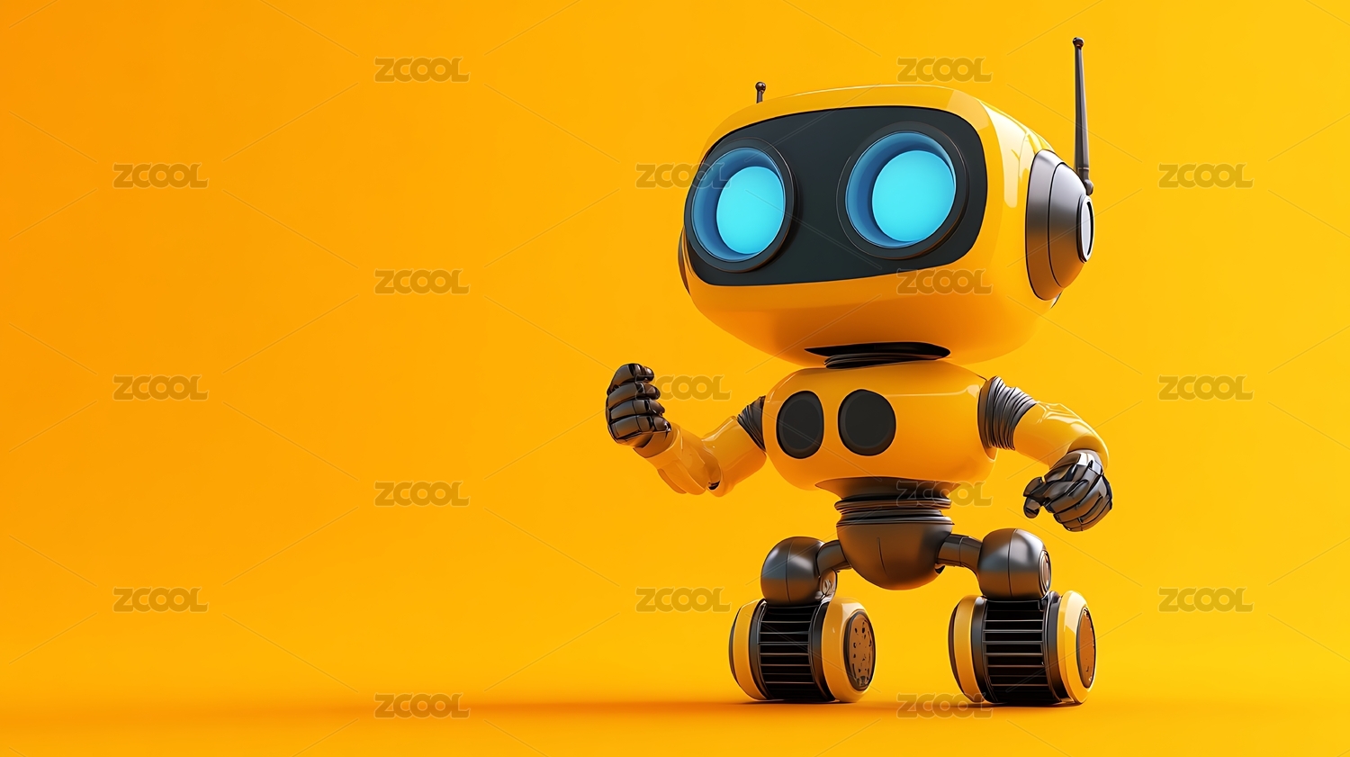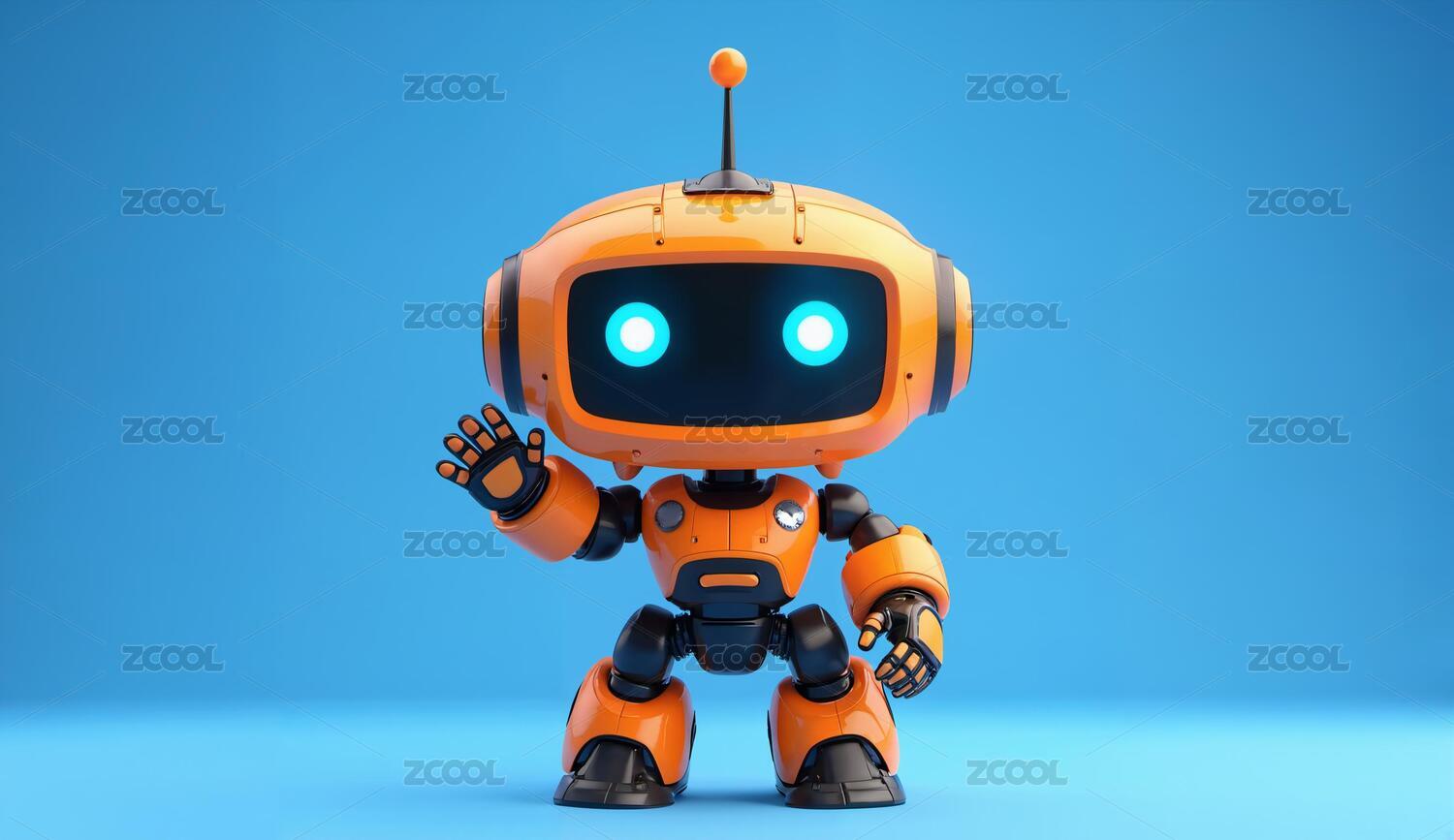 橙色机器人站立背景为蓝色