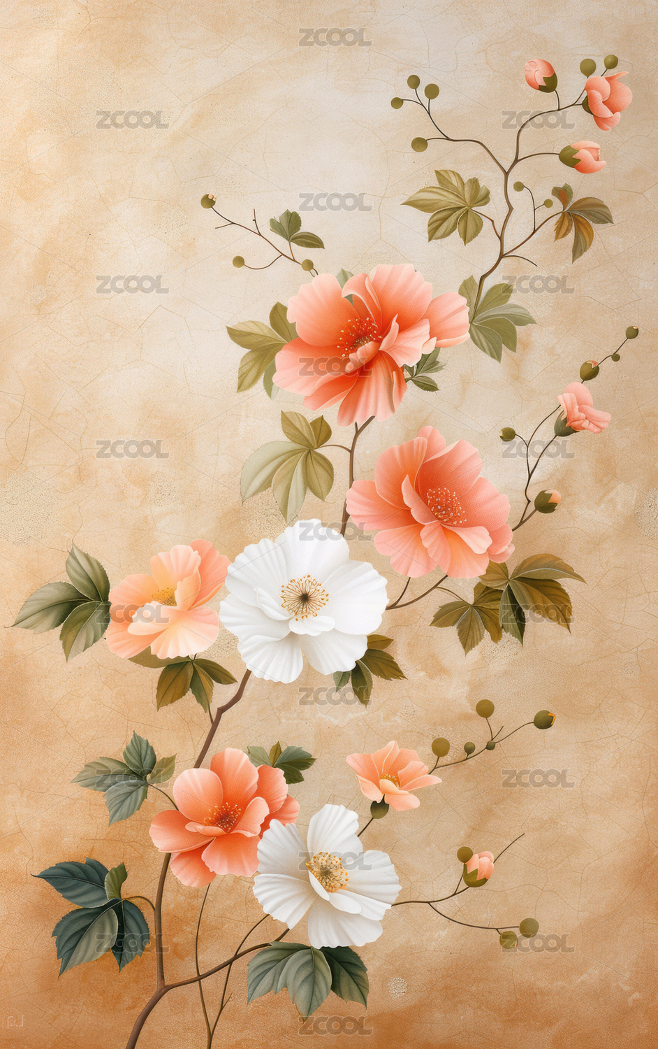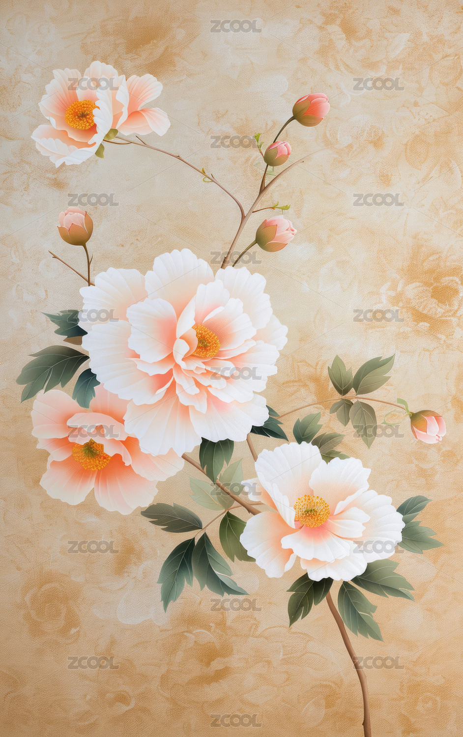 数码亚洲花卉印花图案海报背景