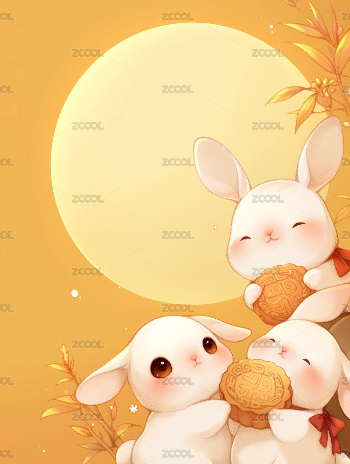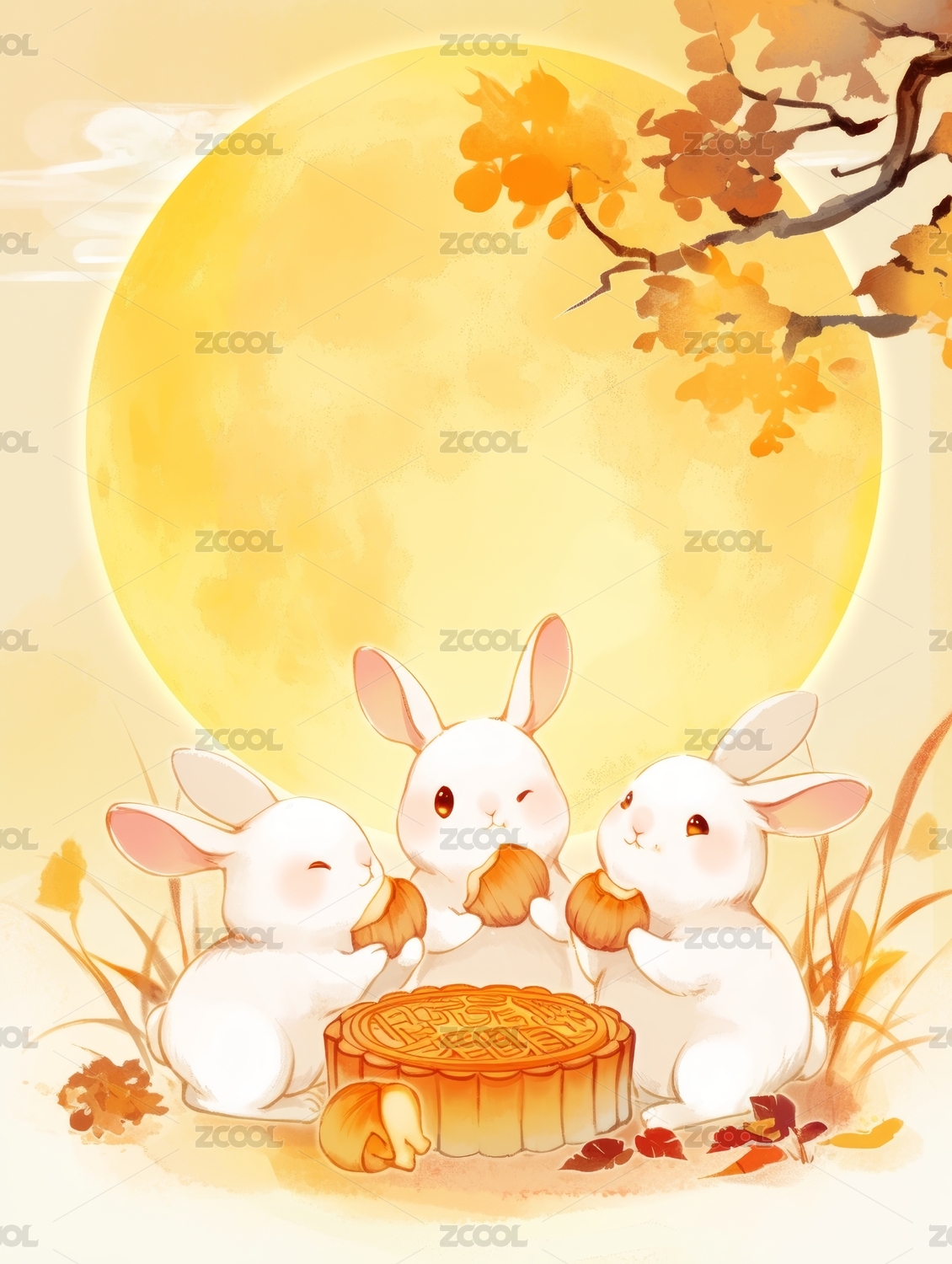 中秋节海报插画几只兔子玉兔在月下玩耍庆祝