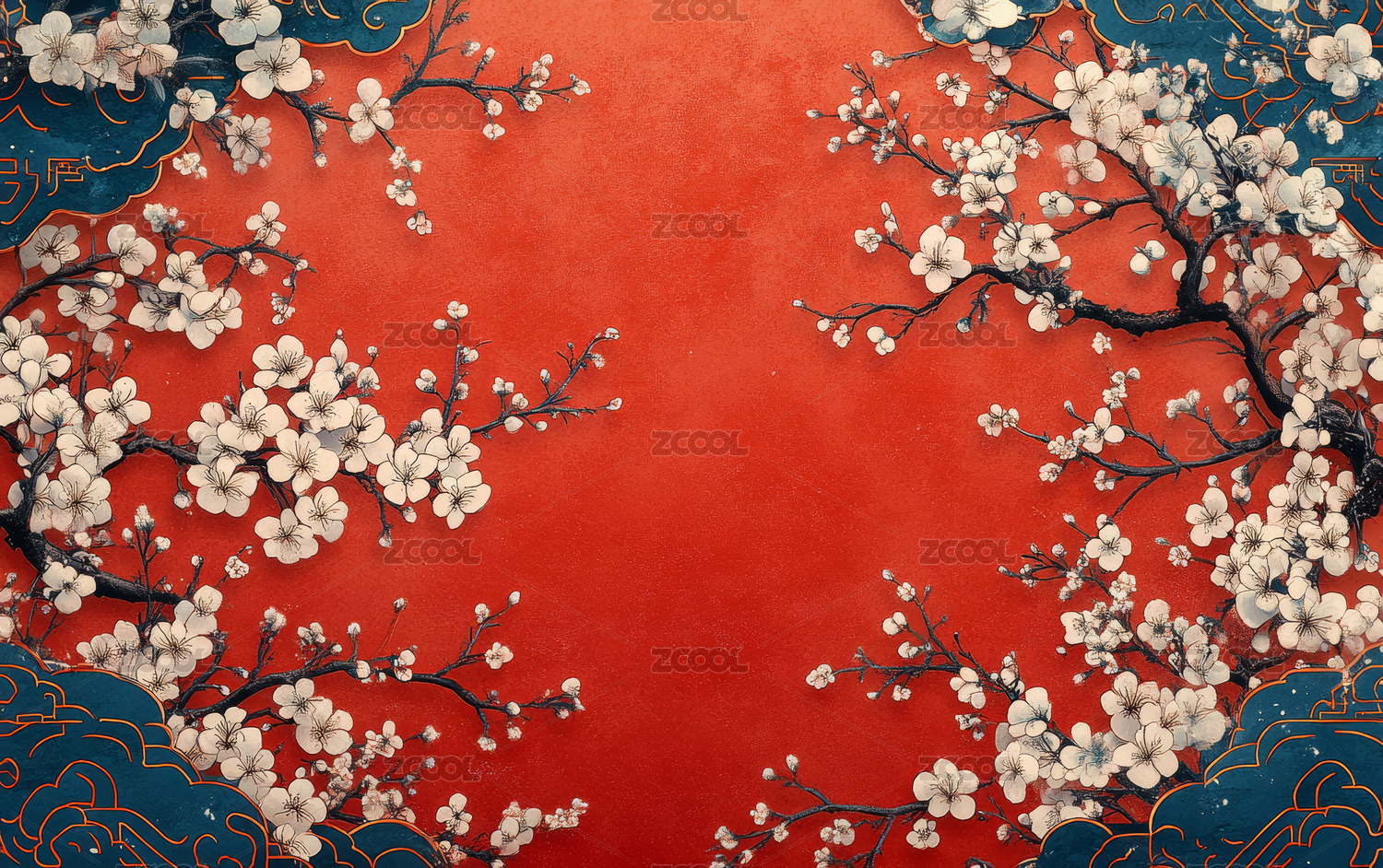 中国元素,传统,绘画,艺术,花卉,复古,红色,装饰,新年,国潮