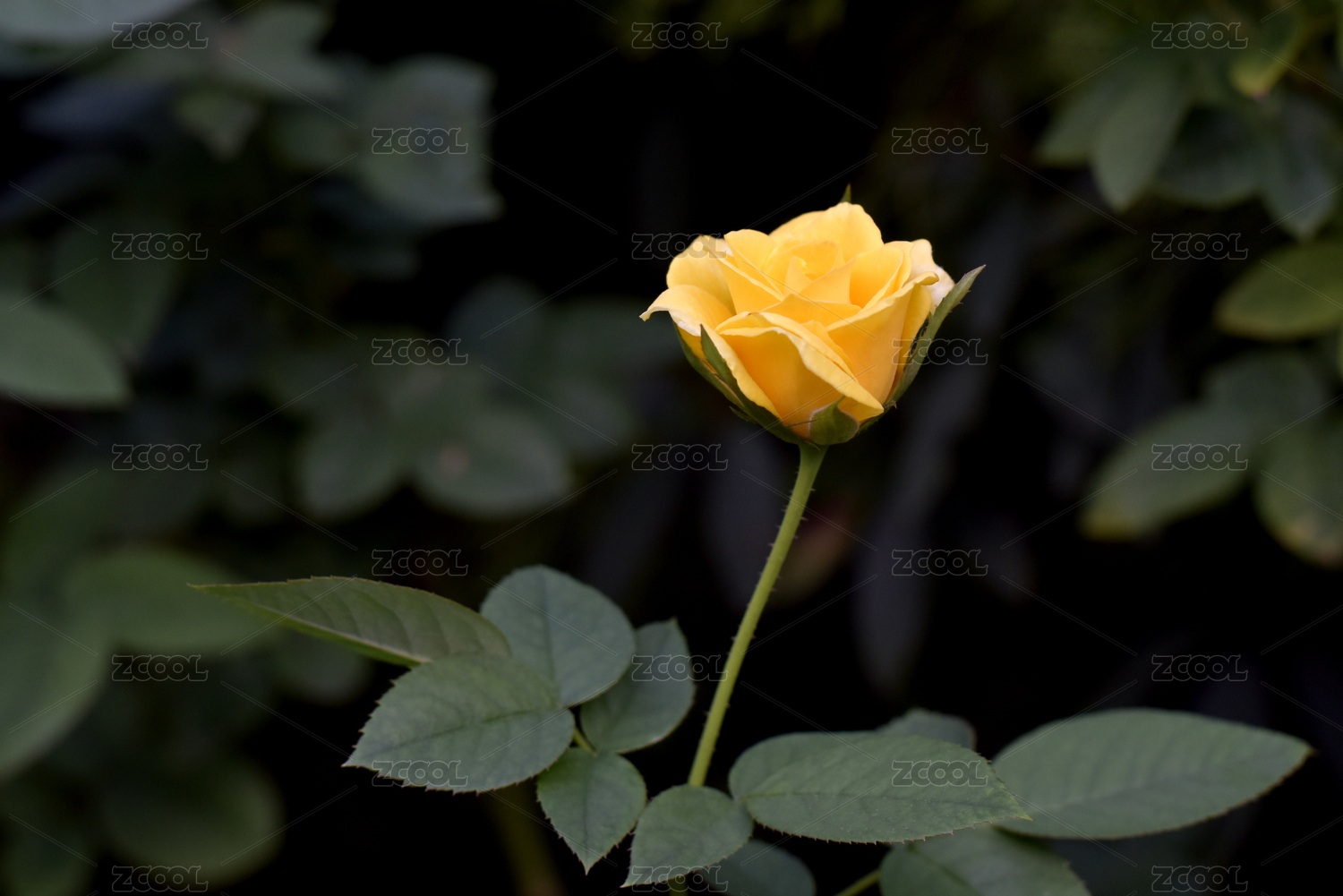 黑色背景下黄色的玫瑰花月季花和花骨朵