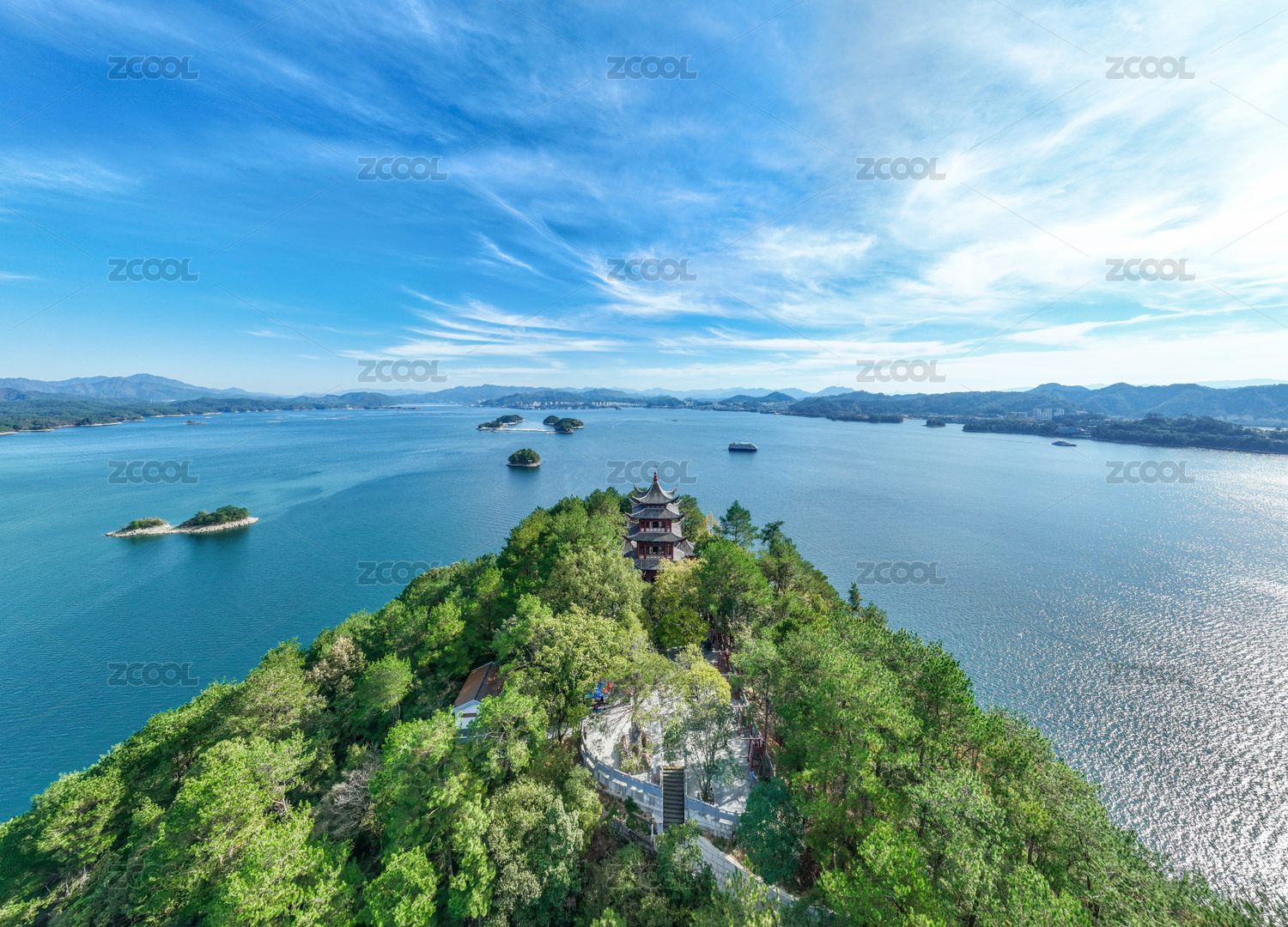 中国浙江省杭州市淳安县千岛湖景区全景