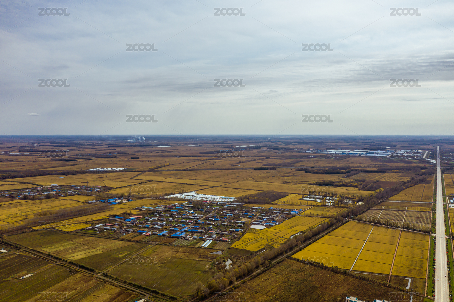 航拍黑龙江大庆市杜尔伯特县南引水渠边丰收