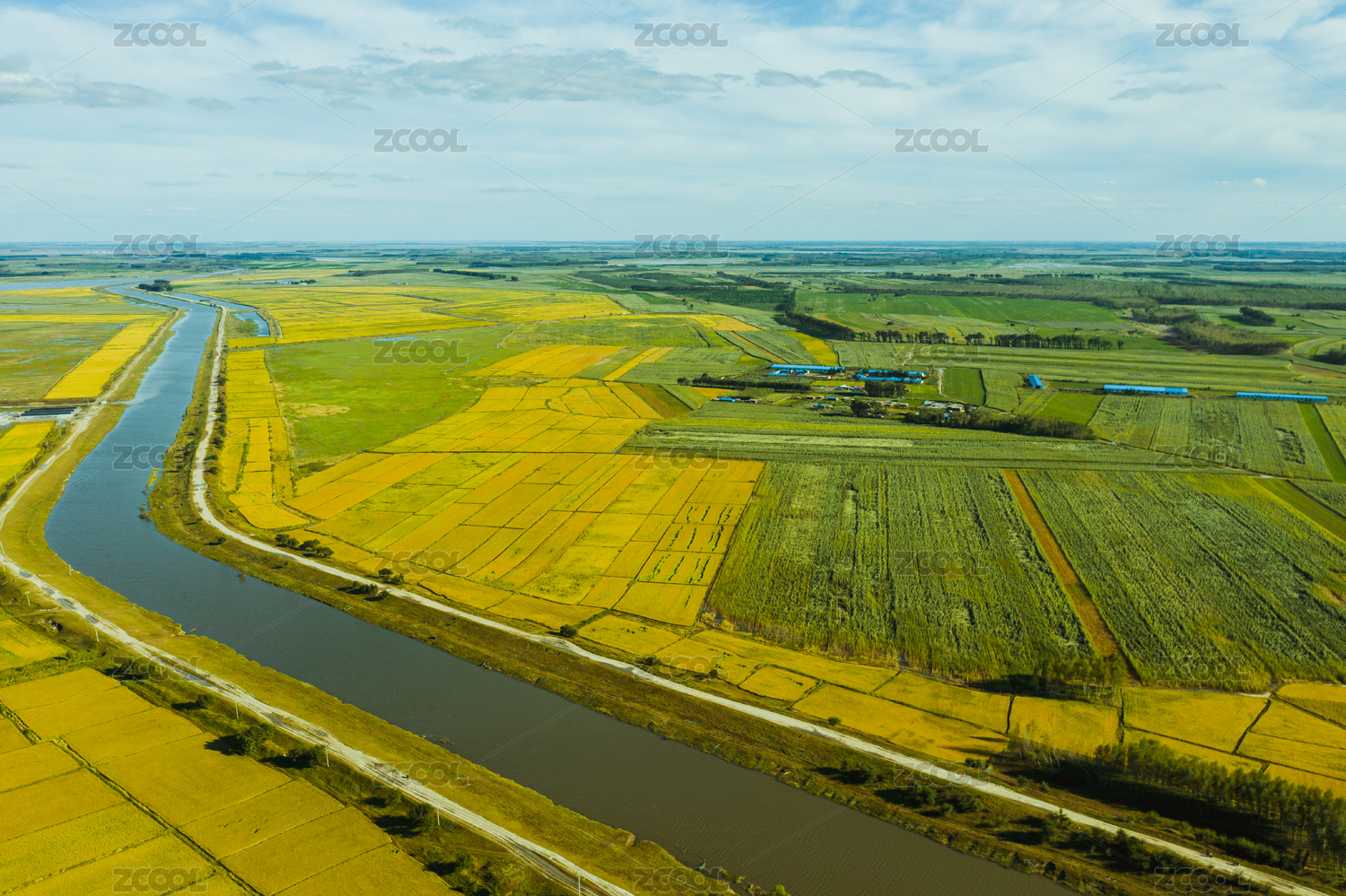 中国黑龙江省五常市航拍无人水稻稻田摄影图