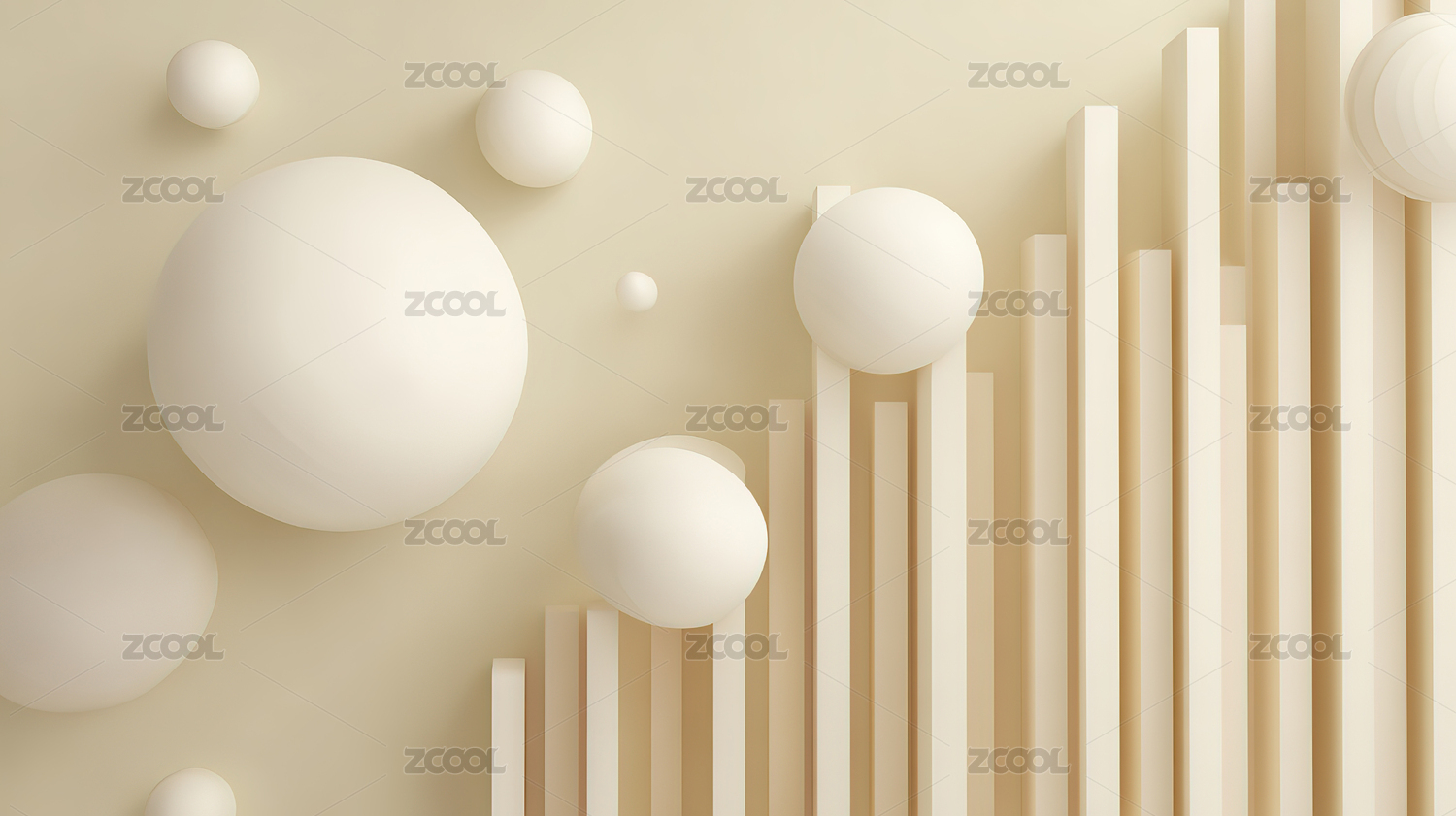 白色球体与竖条构成的抽象构图
