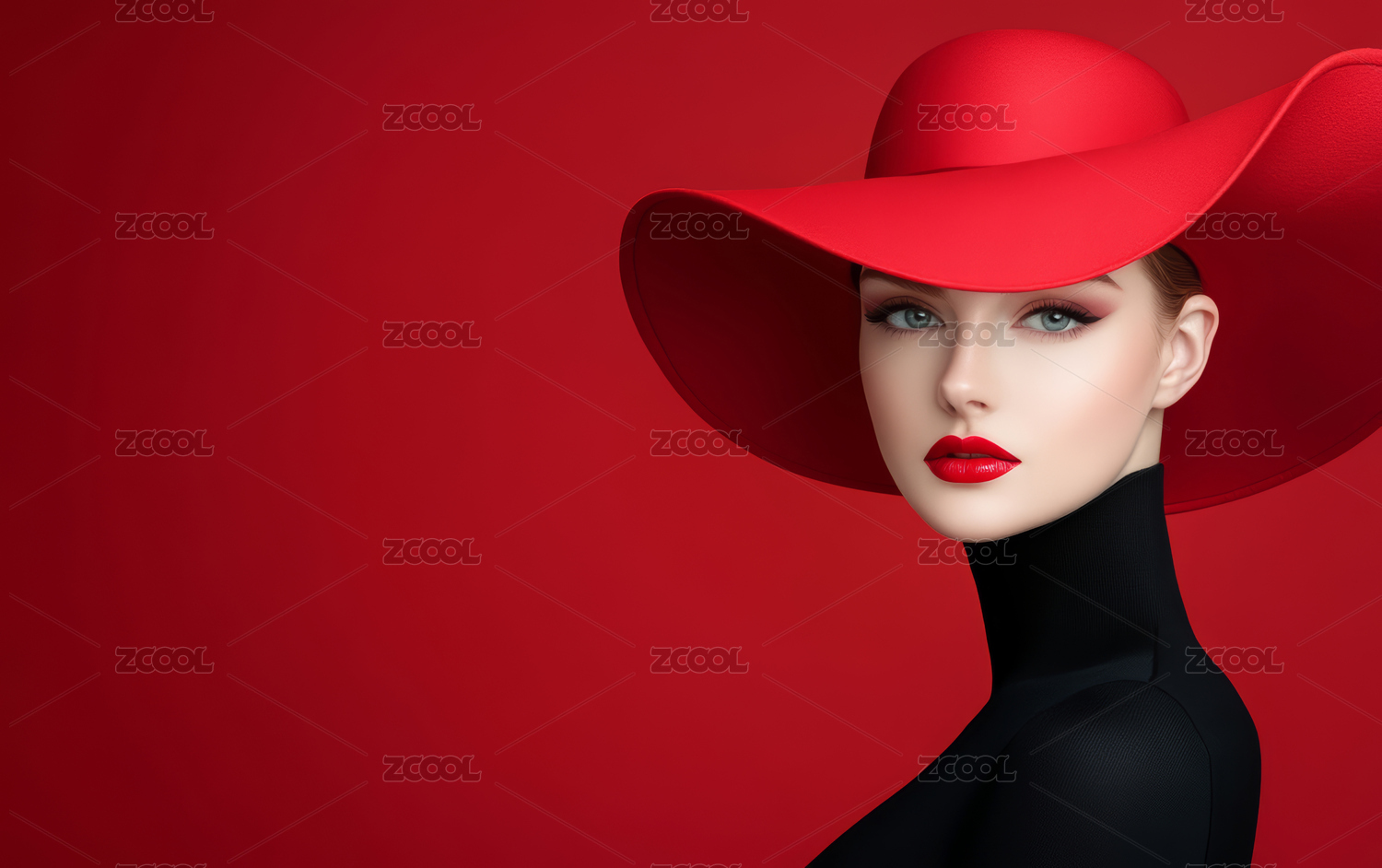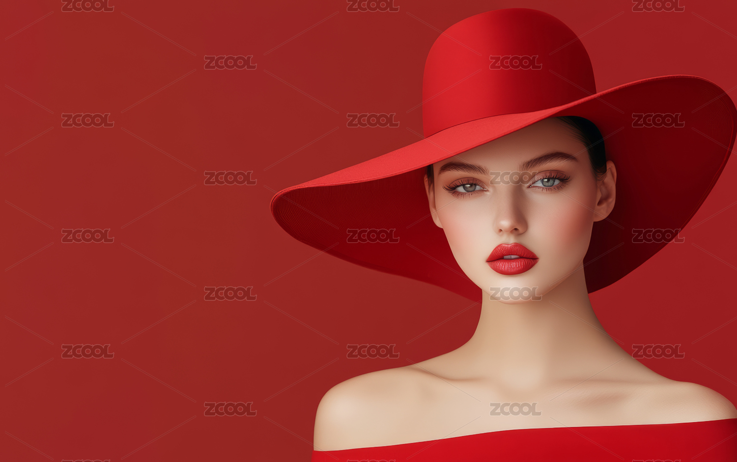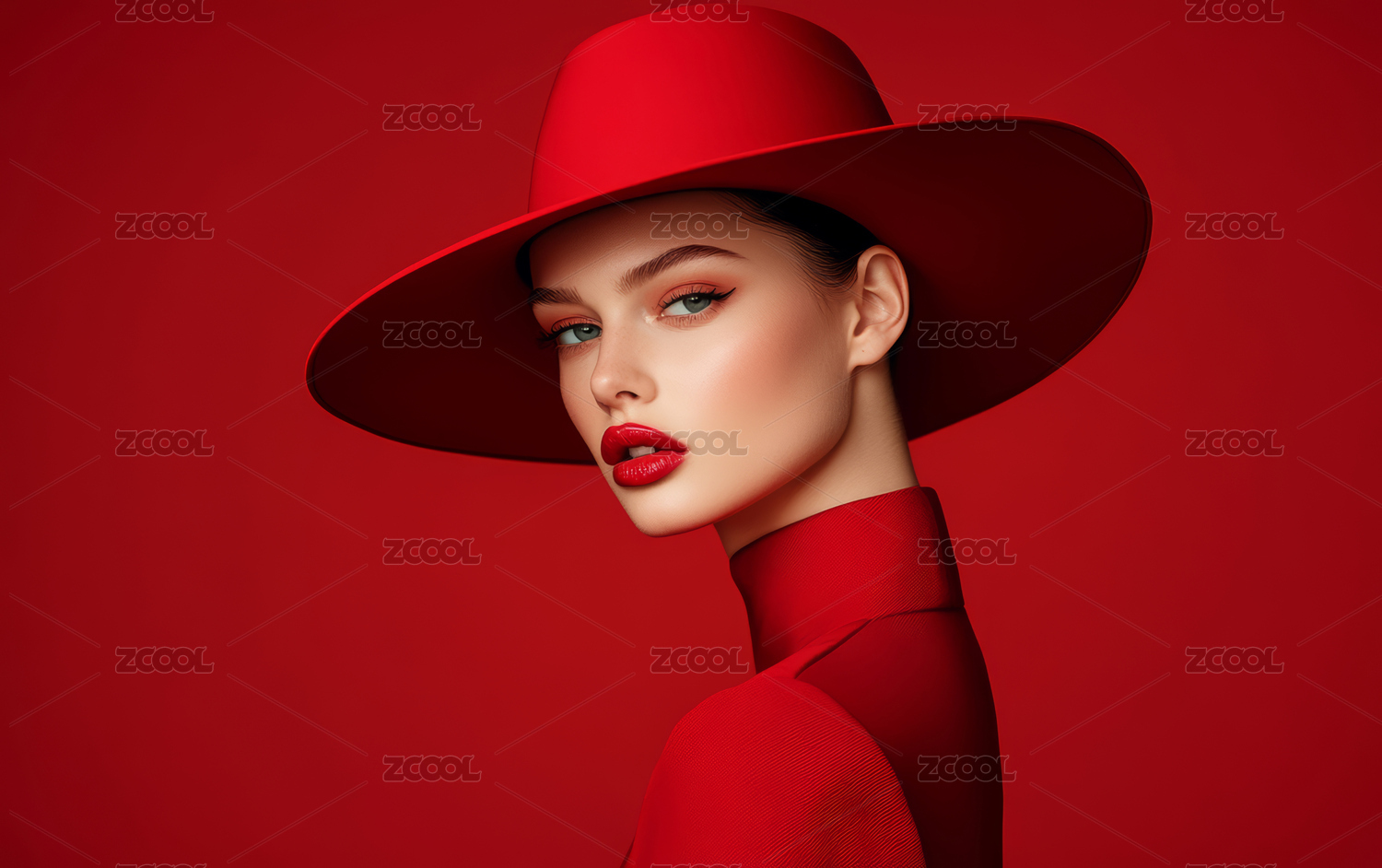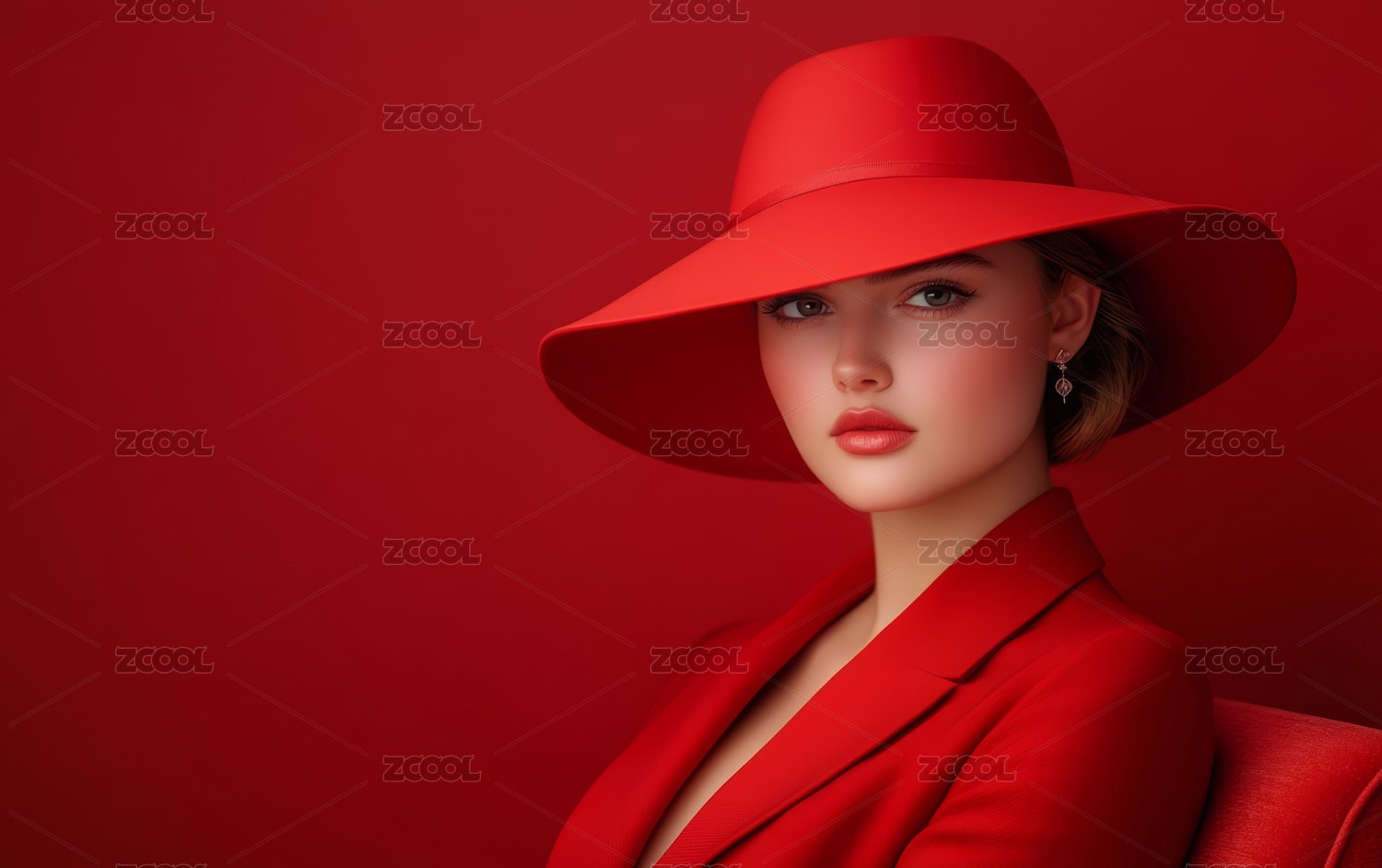 AI,红色,圣诞主题,特写,写真,欧美风格,时尚,人像,壁纸,海报