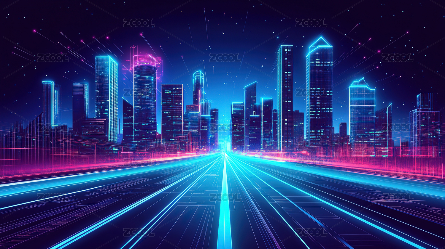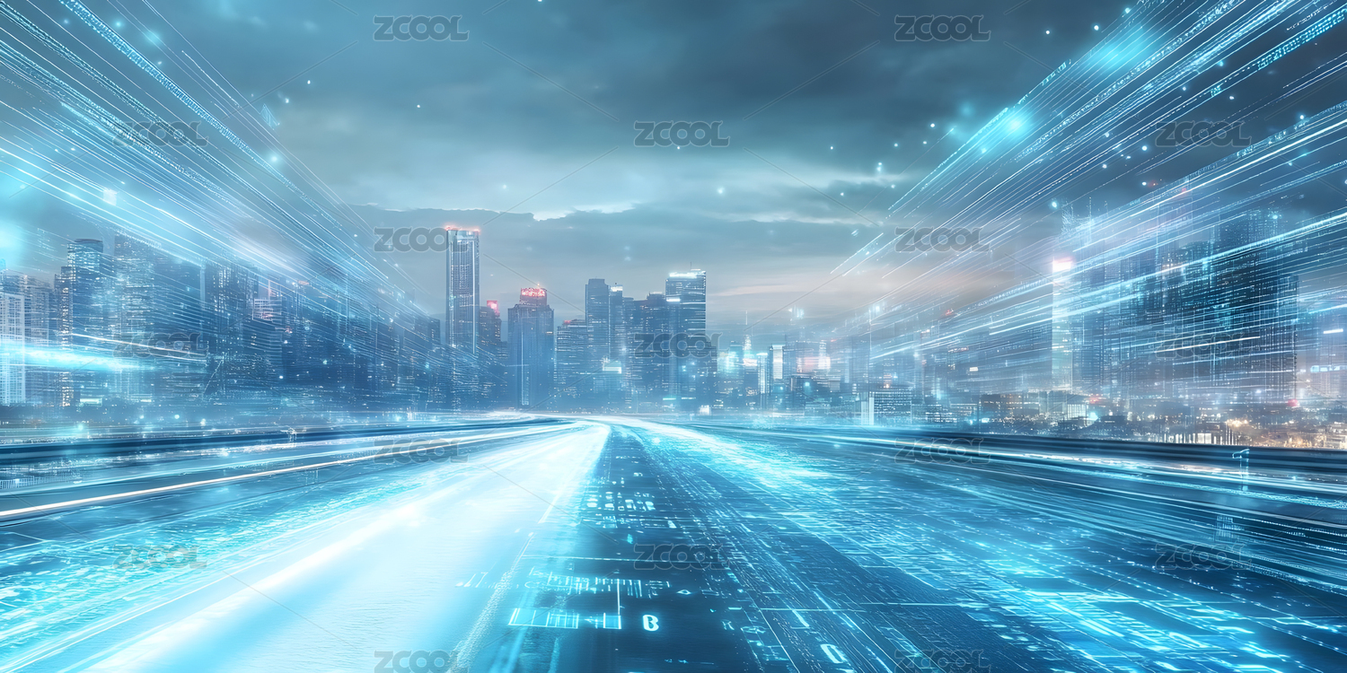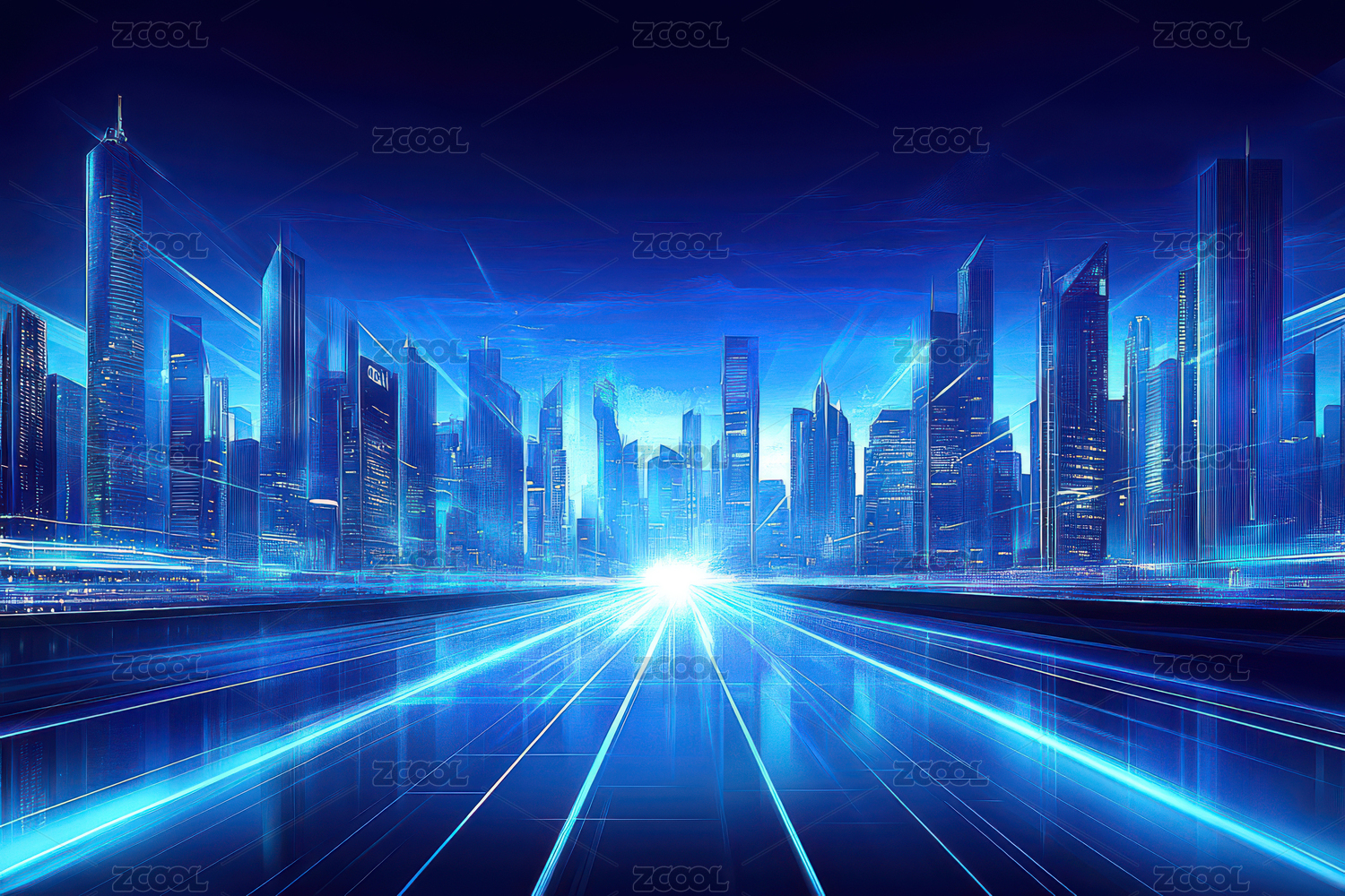 宽广,道路,蓝色,白色,光线轨迹,科技感,背景,繁华,城市天际线,高楼林立