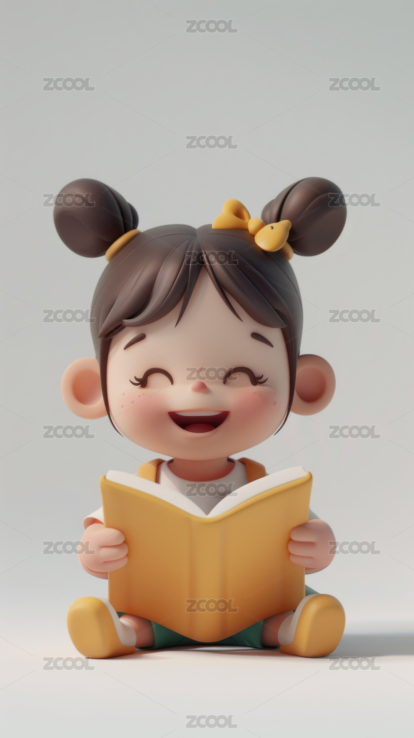 3D渲染的可爱卡通小女孩儿童节概念插图