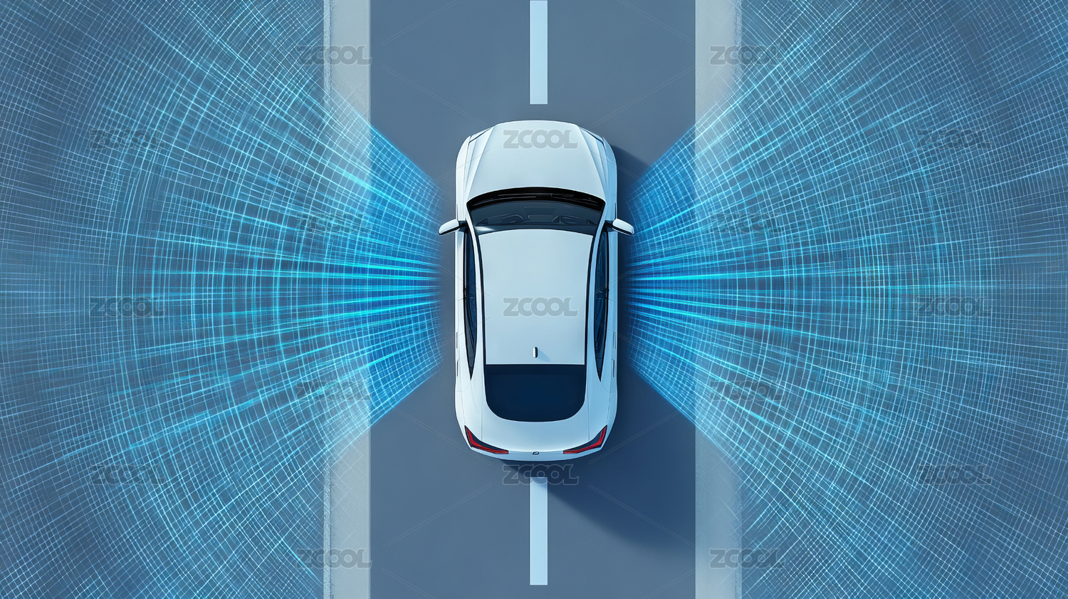 无人驾驶,智能驾驶汽车的避障概念图,雷达