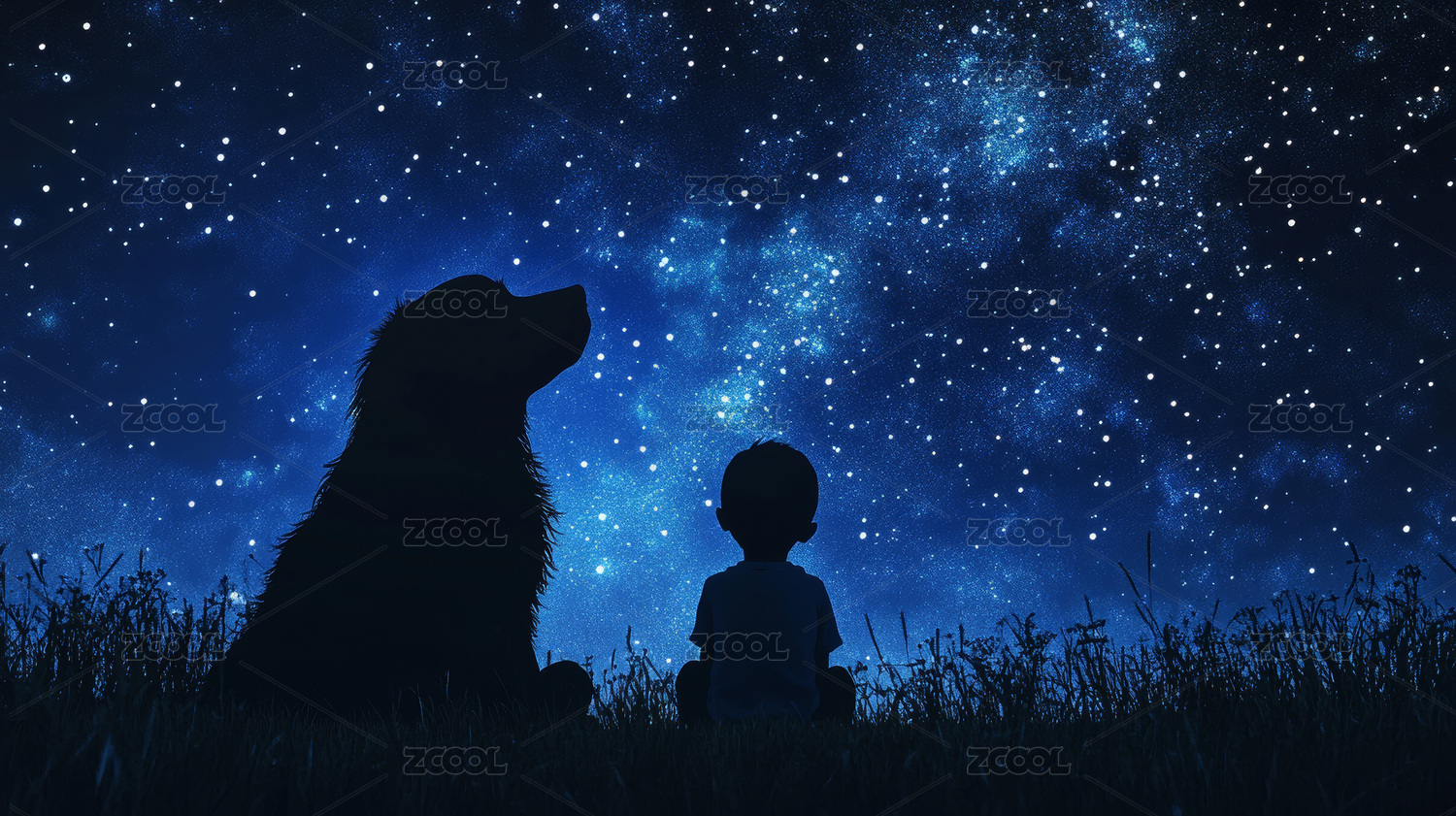 宠物,小狗,狗狗,犬,动物,天空,草,坐着,星空,夜