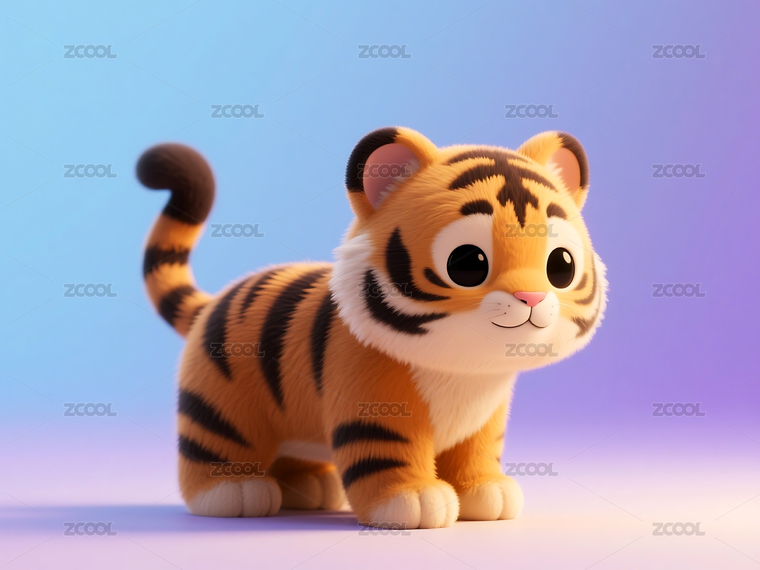 3D,卡通,三维,立体,背景,插图,渲染,老虎,小老虎,虎年