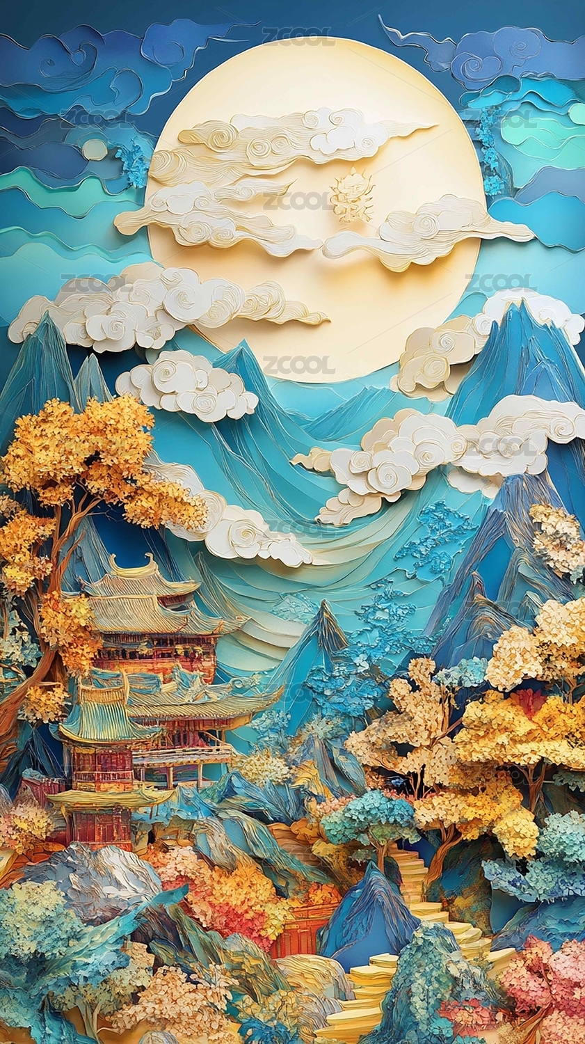 背景,插图,国风,国潮,金山,银山,壁纸,抽象,纹理,创意