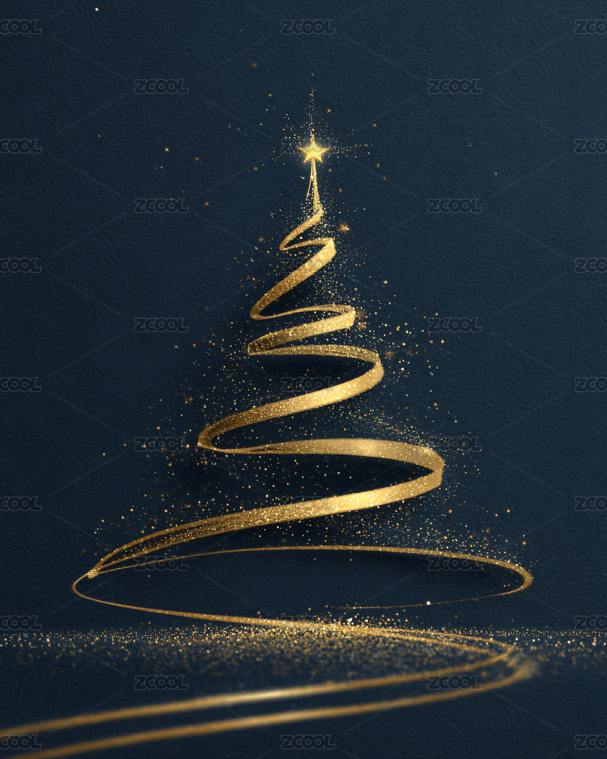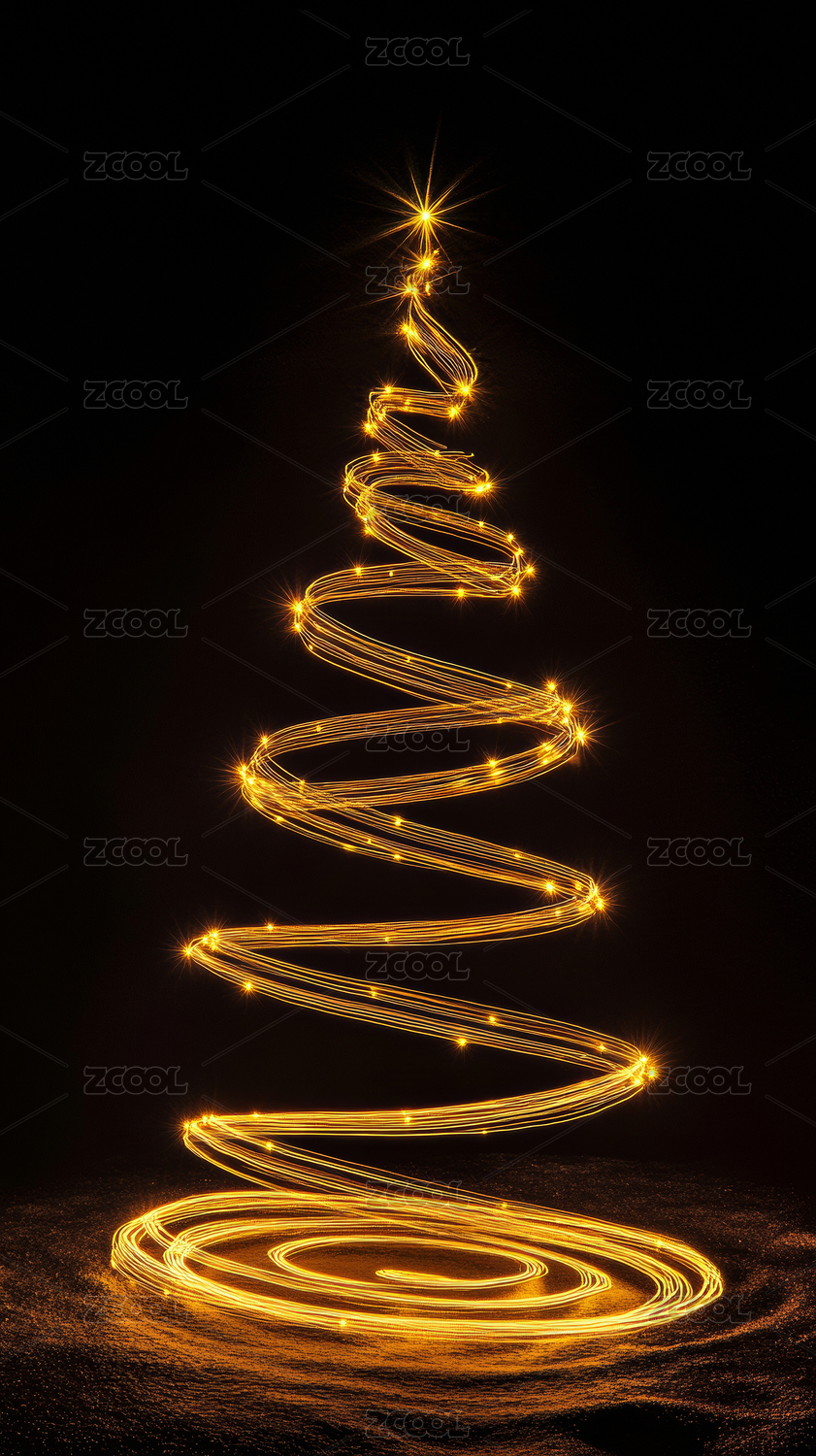 红金螺旋圣诞树立体光影图