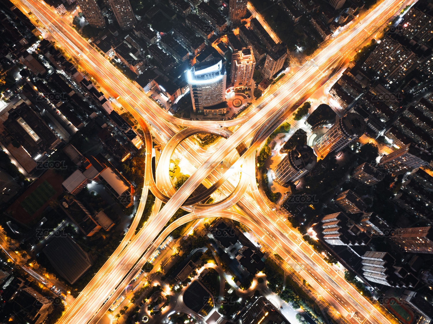 上海延安东路立交桥夜景航拍
