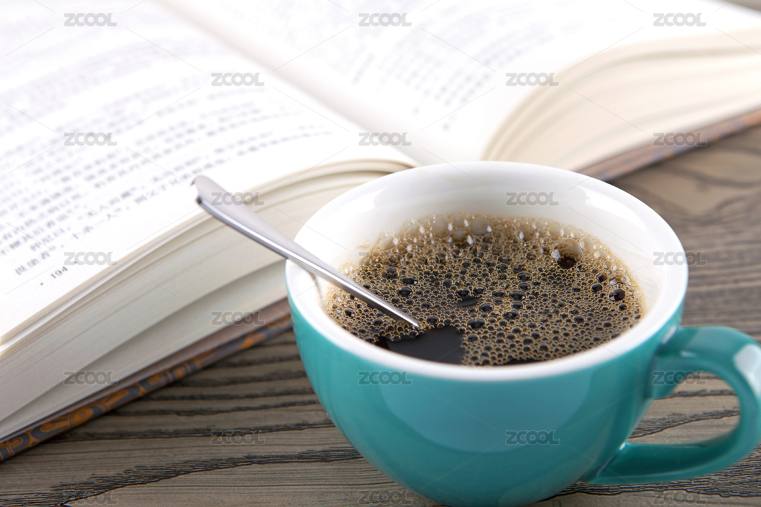 一杯咖啡和一本翻开的书