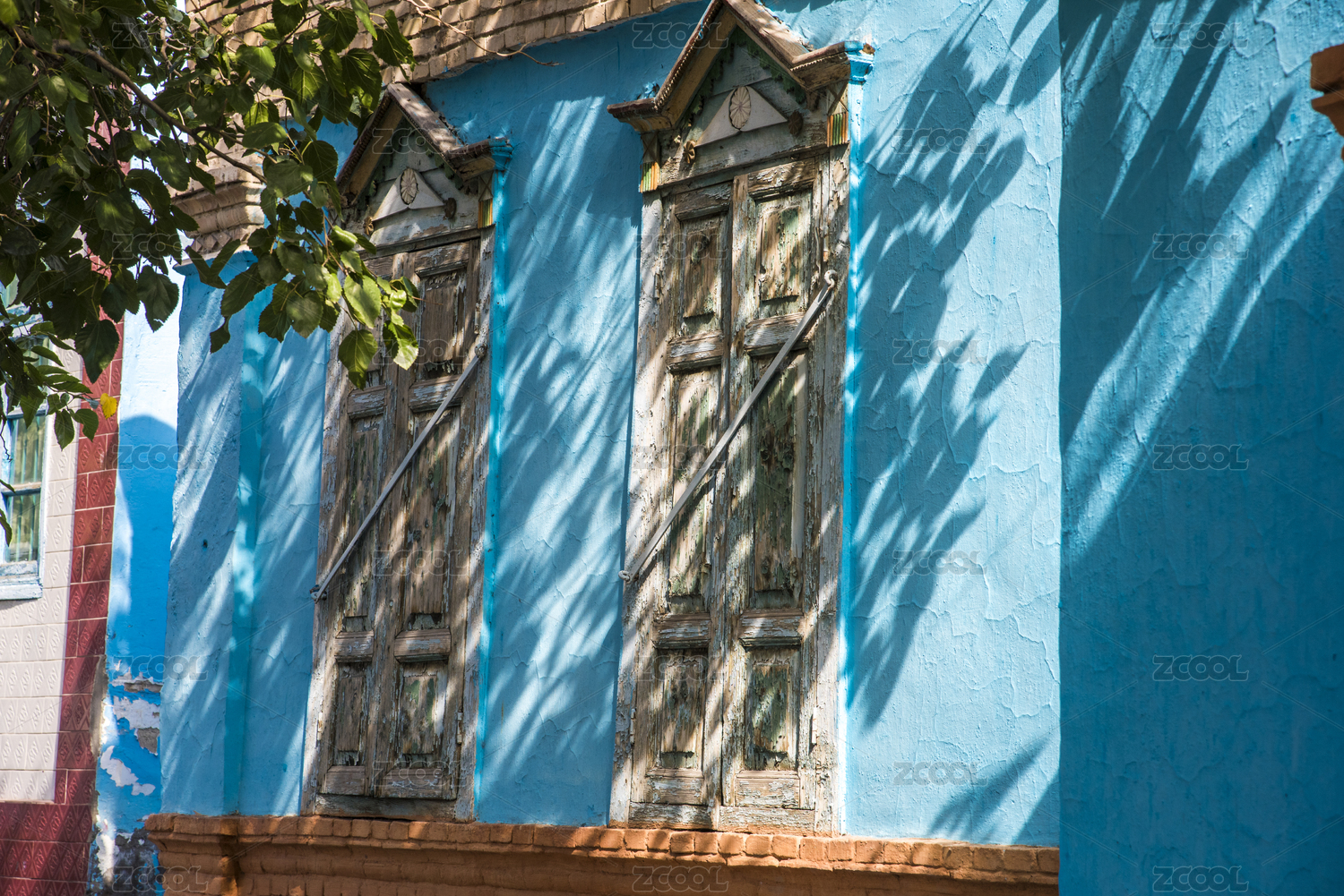 蓝色,建筑,伊宁,喀赞其,窗户,蓝墙,中国,新疆,伊犁