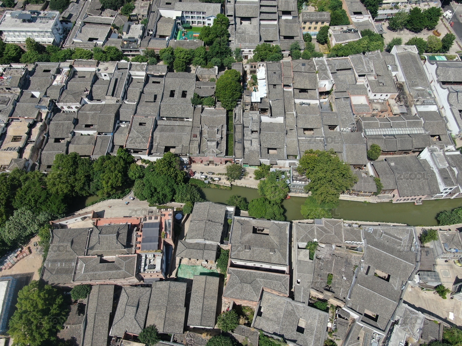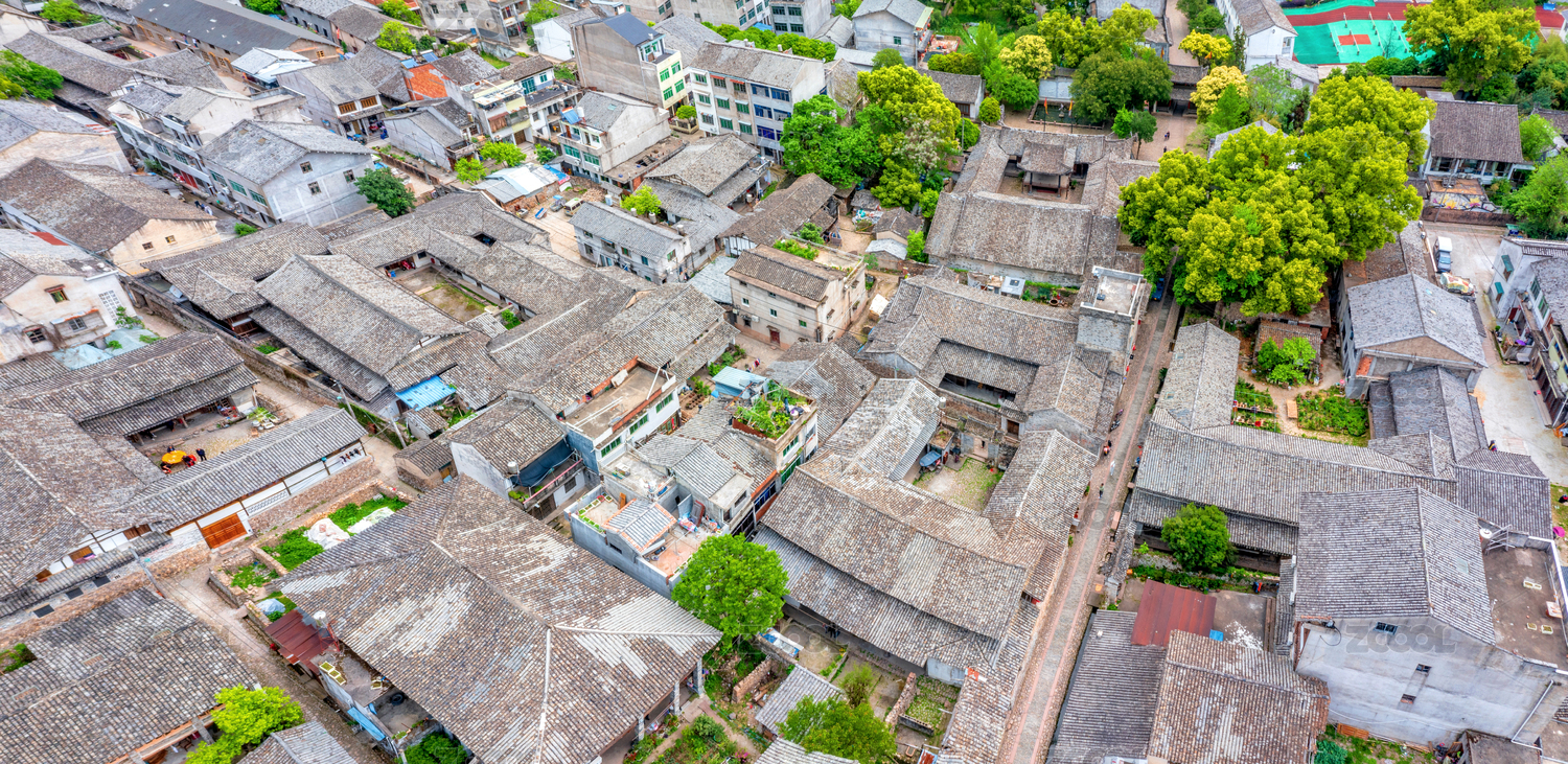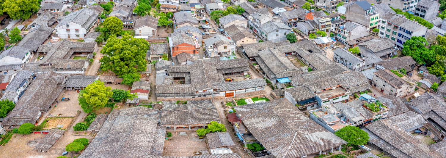 中国浙江温州楠溪江芙蓉古村航拍风光