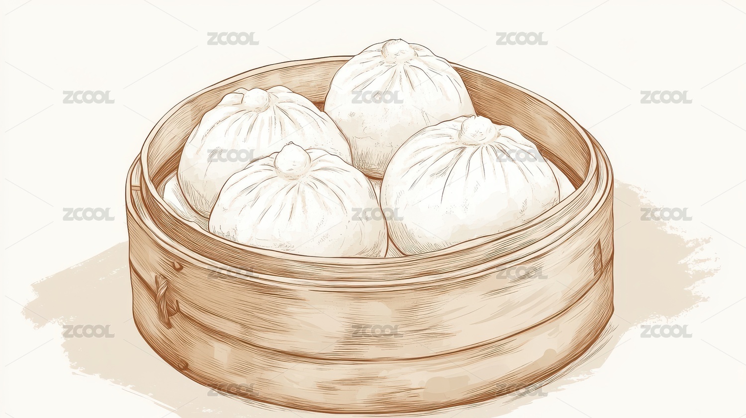 AIGCFG,中国风,水墨,插画,中式风格,国潮风,美食,食物,包子,小笼包