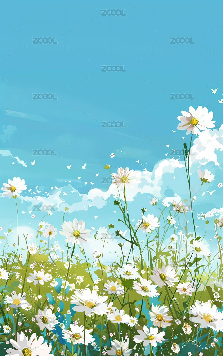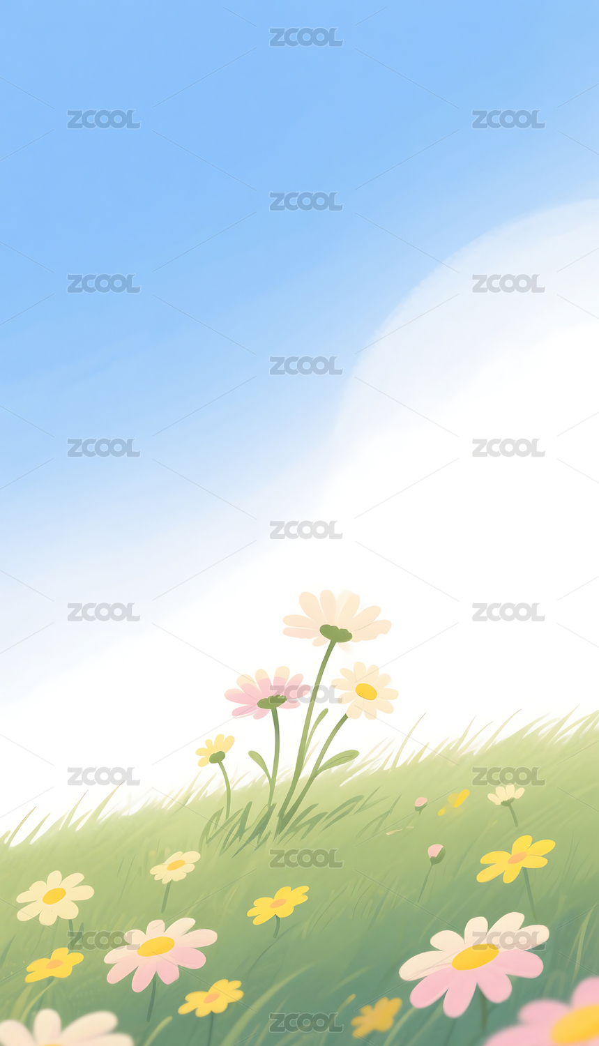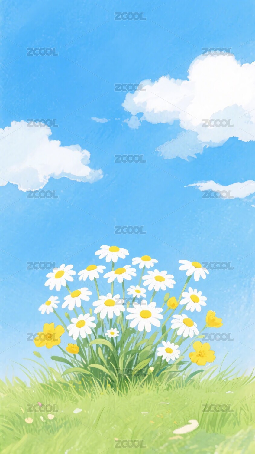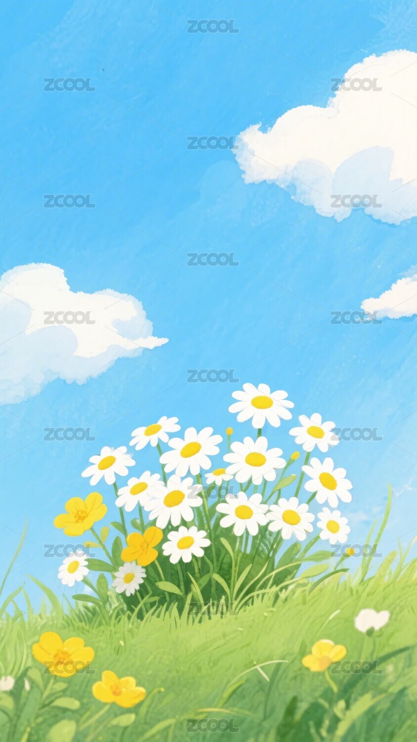 AIGCFG02,小狗,狗,可爱,卡通,插画,花,风景,宠物,天空