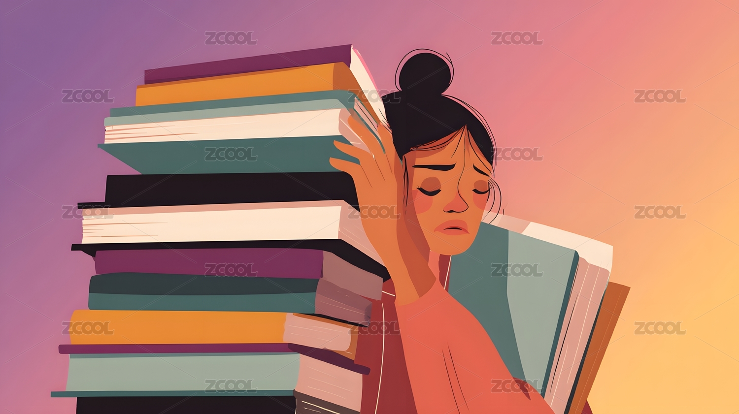 女子抱书头疼 读书学习压力场景