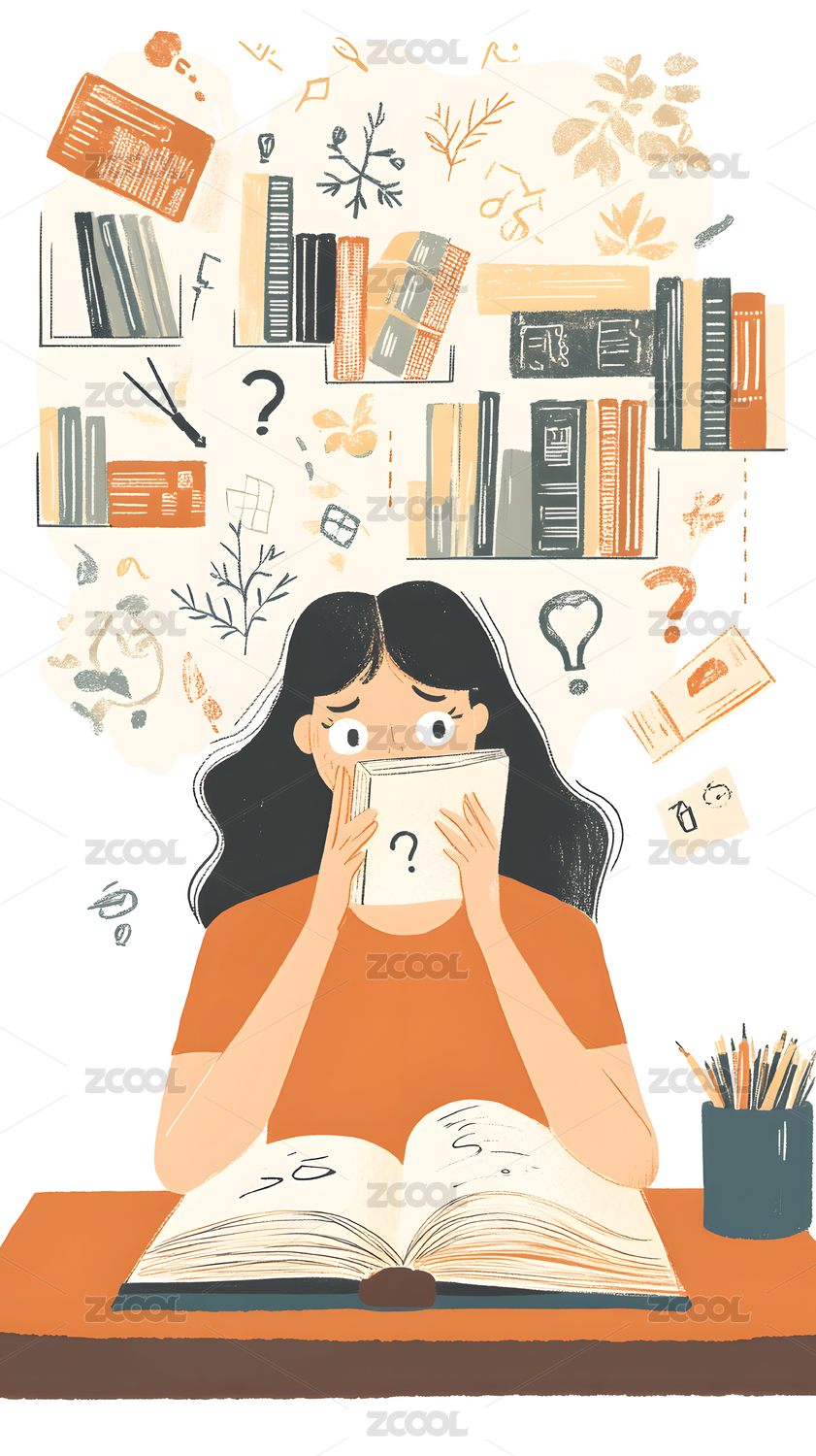 人,人物,卡通,插画,读书,书,读书日,学生,思考,疑问