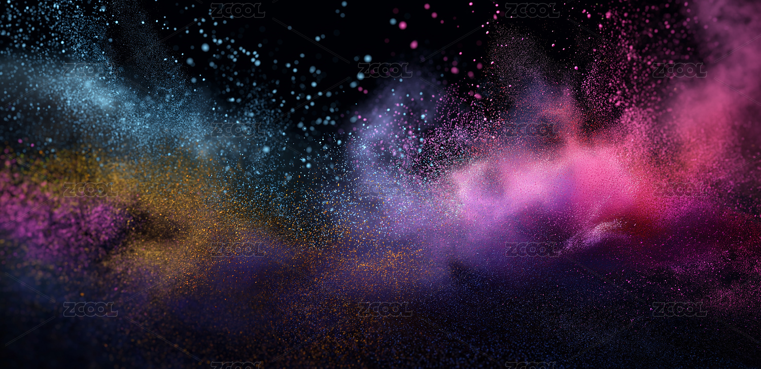 黑色背景中蓝色粉色颜料粉末碰撞喷溅背景