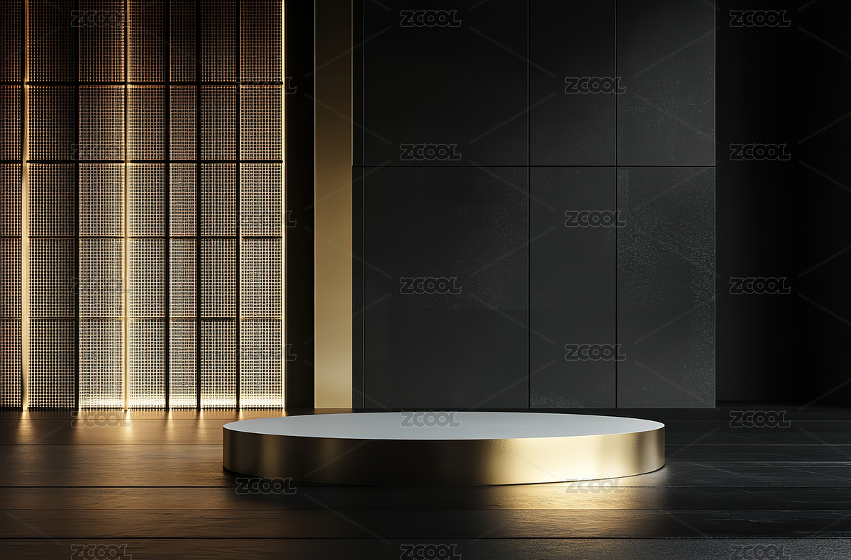 金色圆台混凝土墙布景