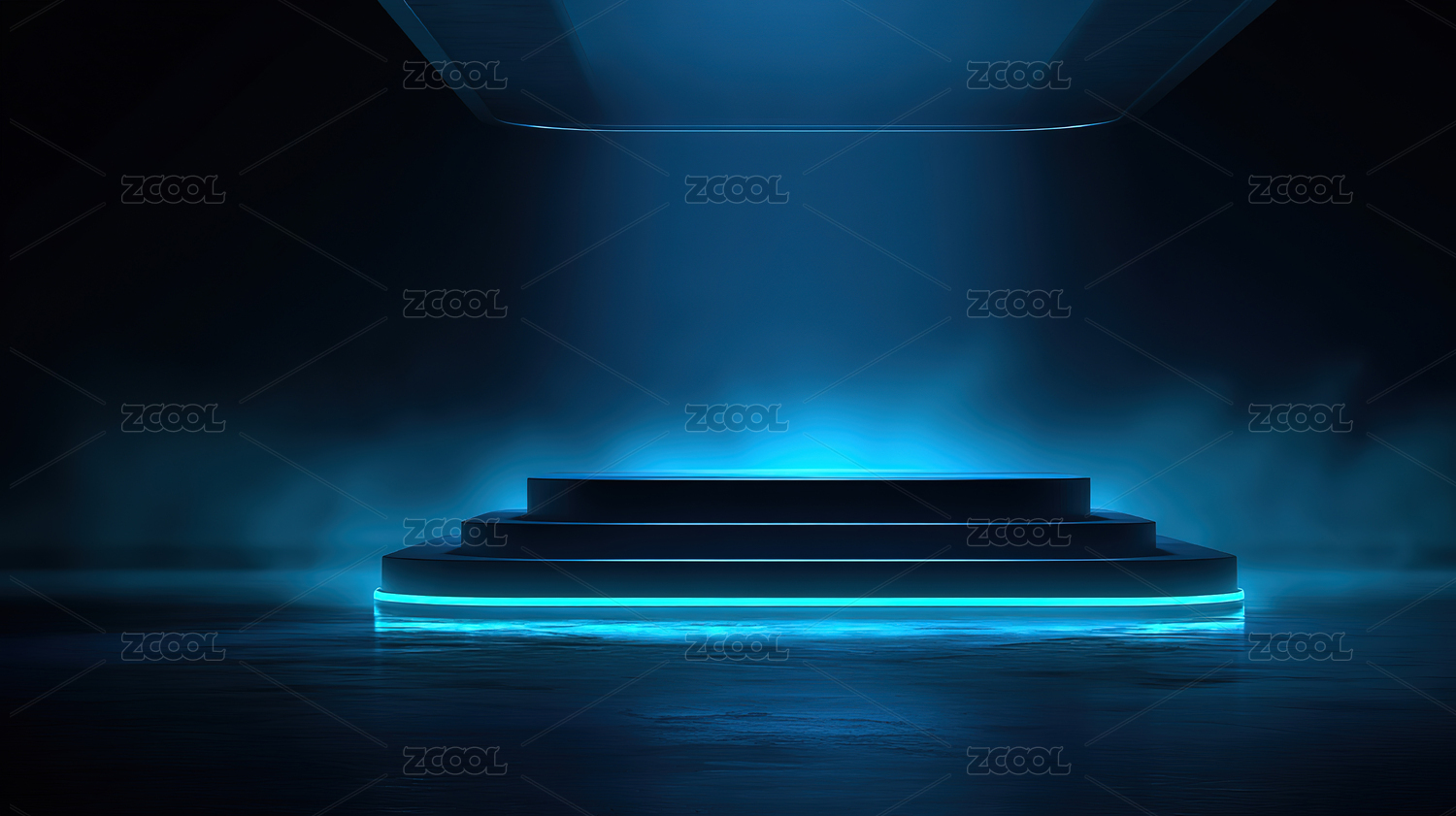 蓝色霓虹灯照亮的阶梯舞台