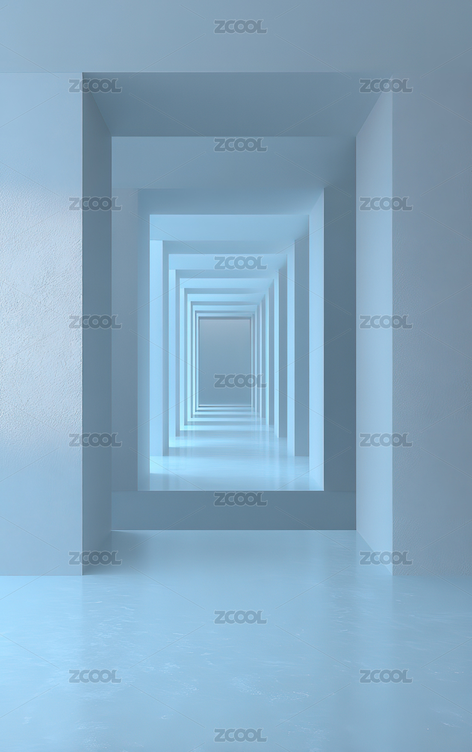 蓝色走廊透视