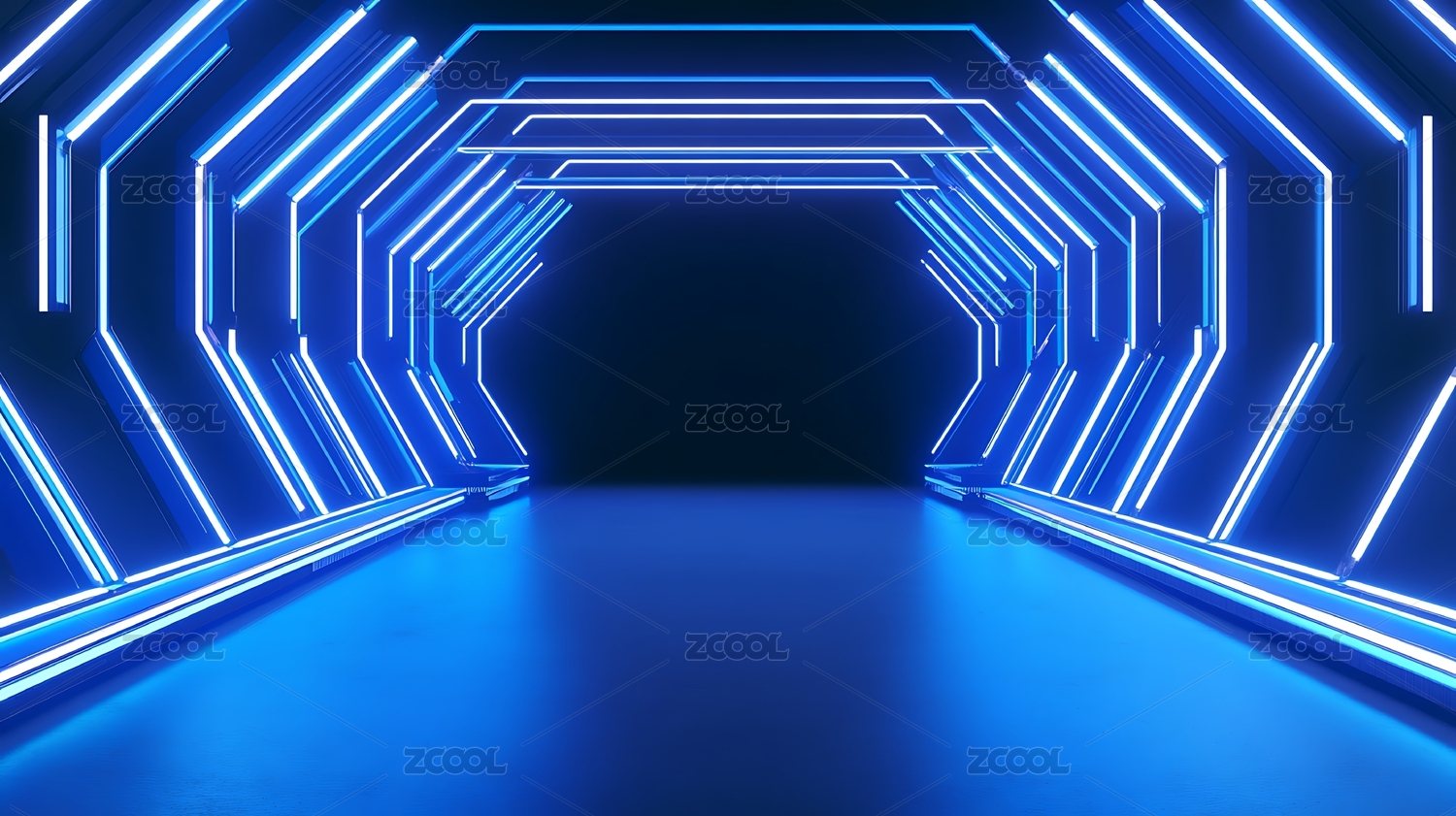 蓝色霓虹几何隧道