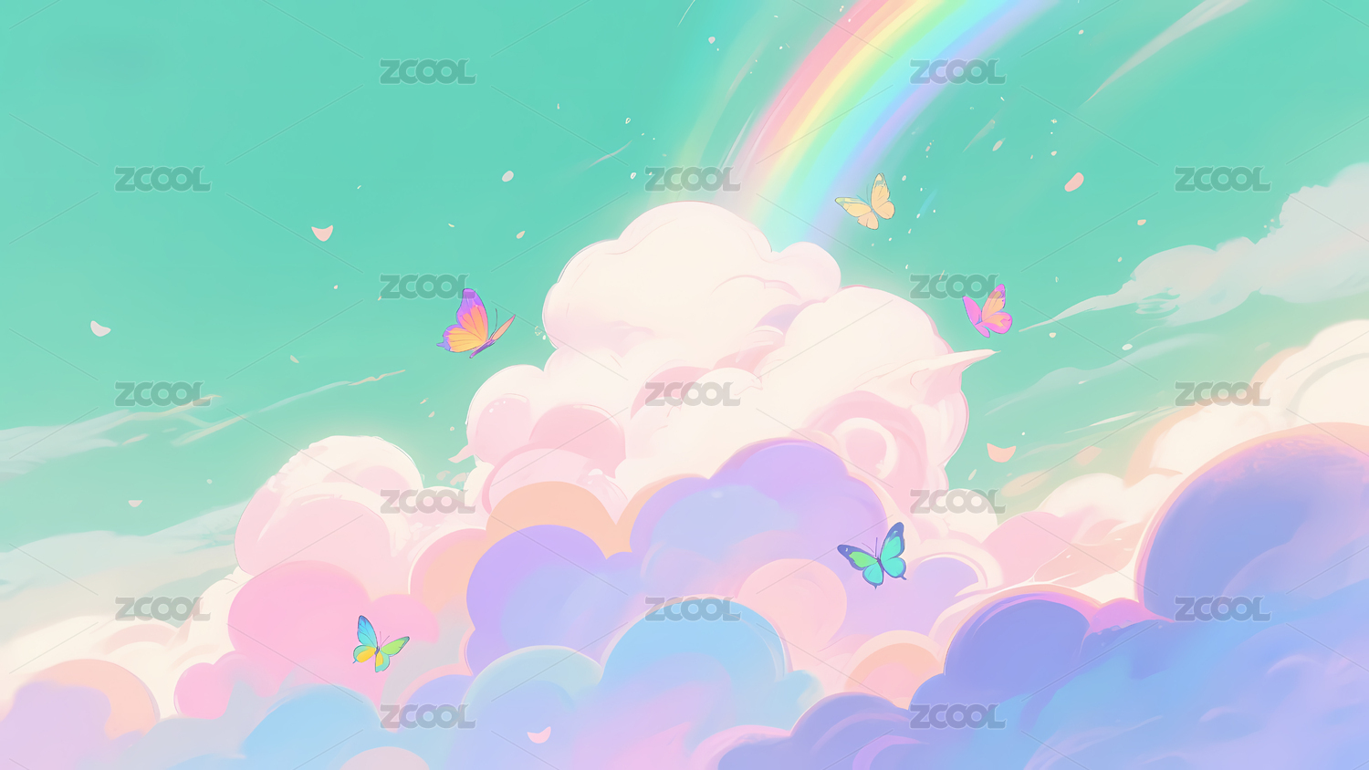 插画,背景,云,植物,天空,花,月亮,式样,唯美,太空