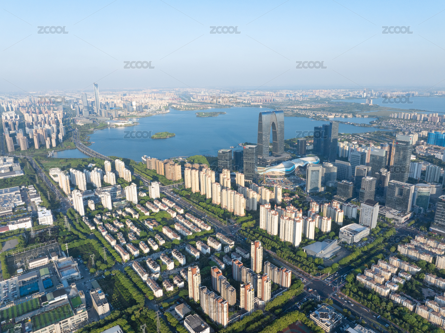 航拍苏州现代城市风光