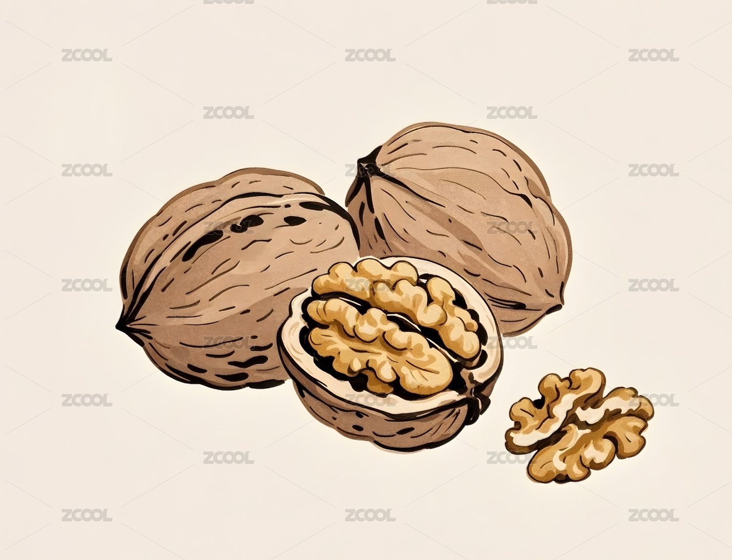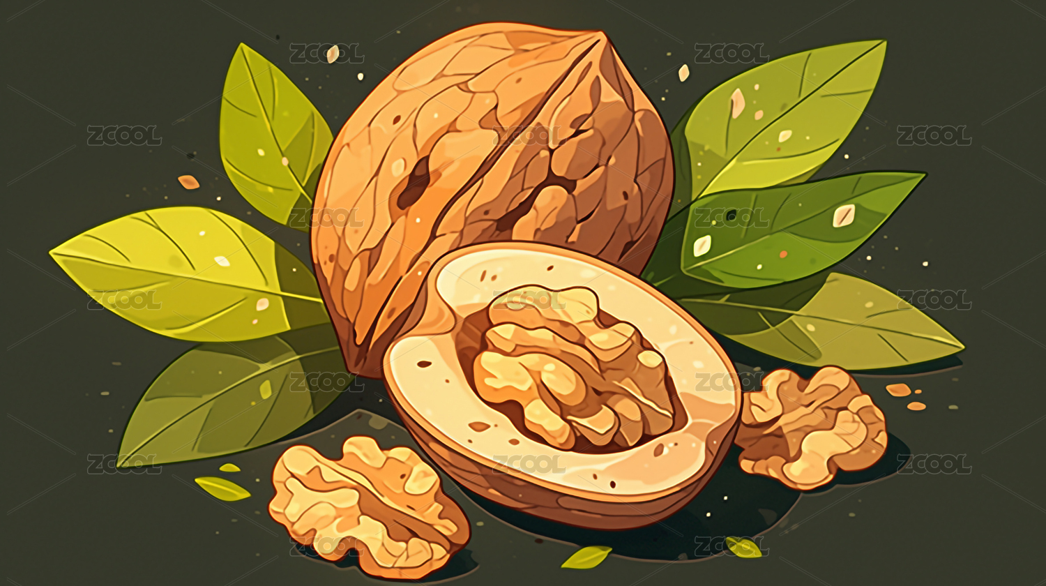 手绘风核桃的自然馈赠