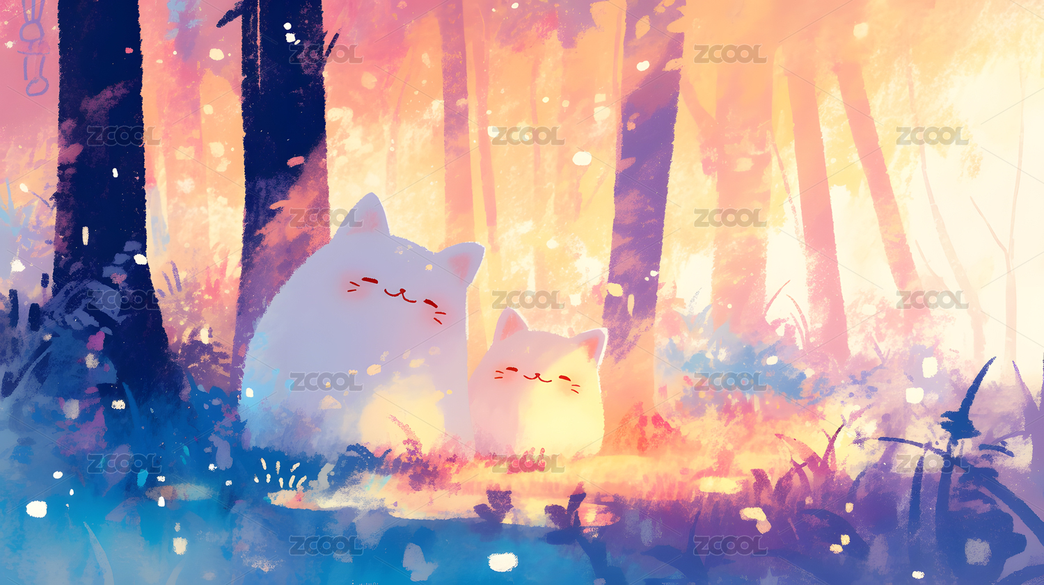 猫,女孩,失恋,分手,森林,树林,山洞,长毛猫,金吉拉,绘本