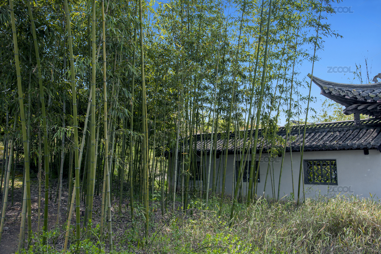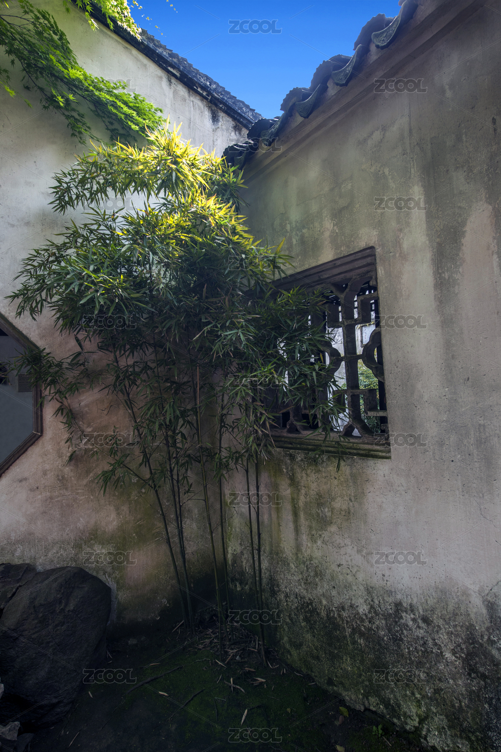 春天中国江南园林院落的绿竹,绿植