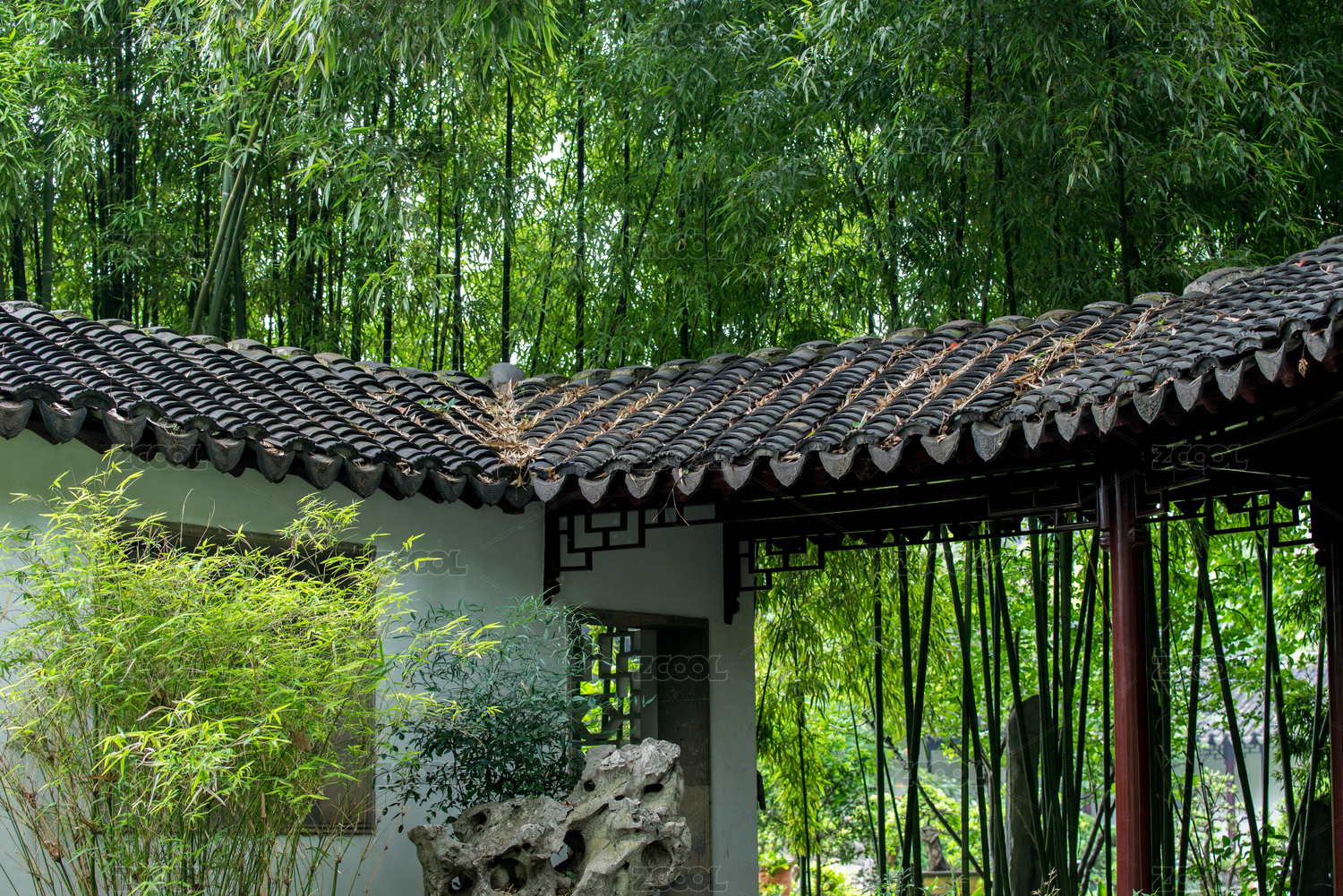 四川眉山三苏祠掩映在竹林中的庭院