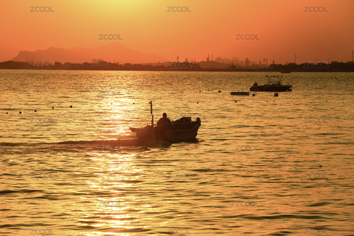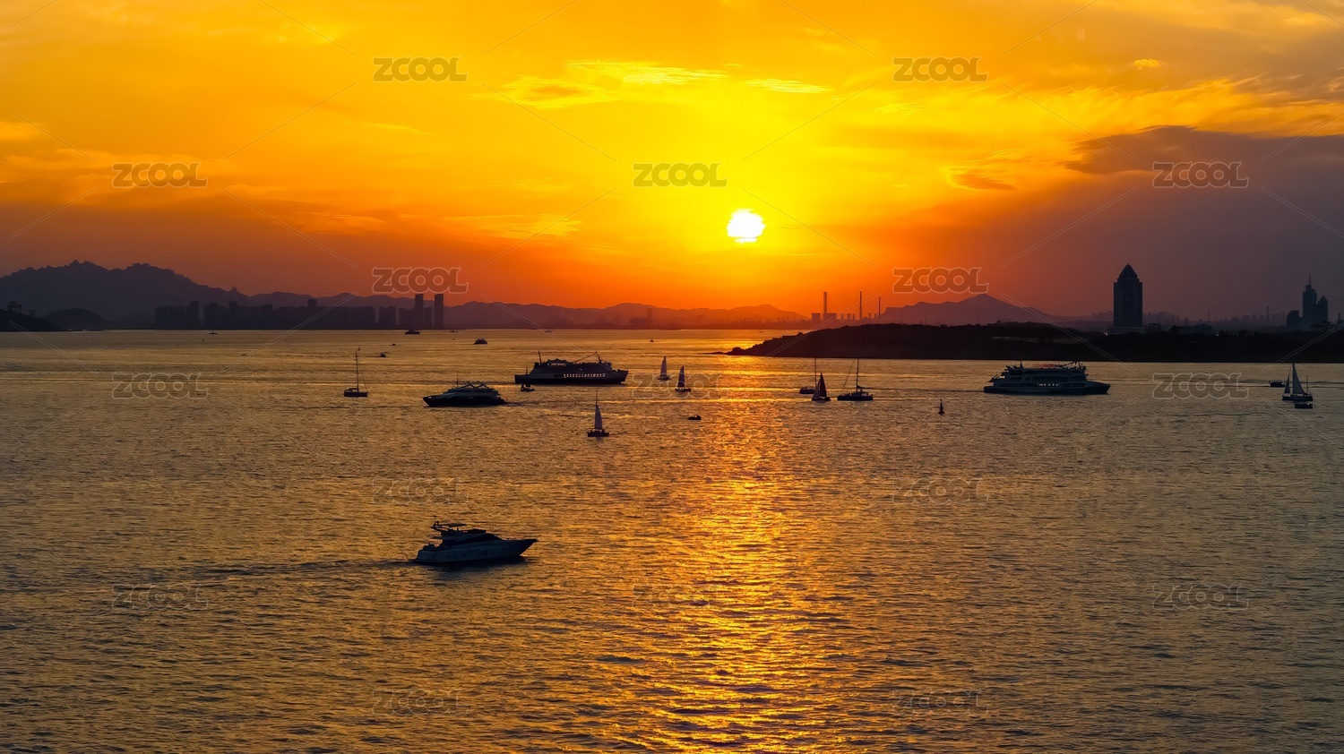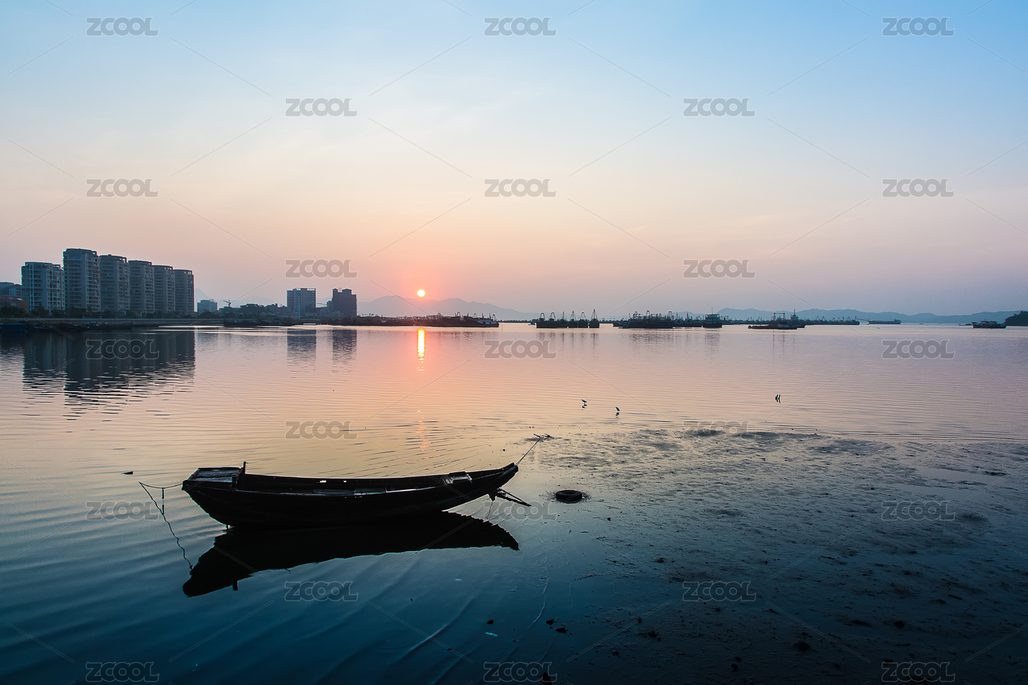落日黄昏日柱天象下的杭州之江版块城市建筑