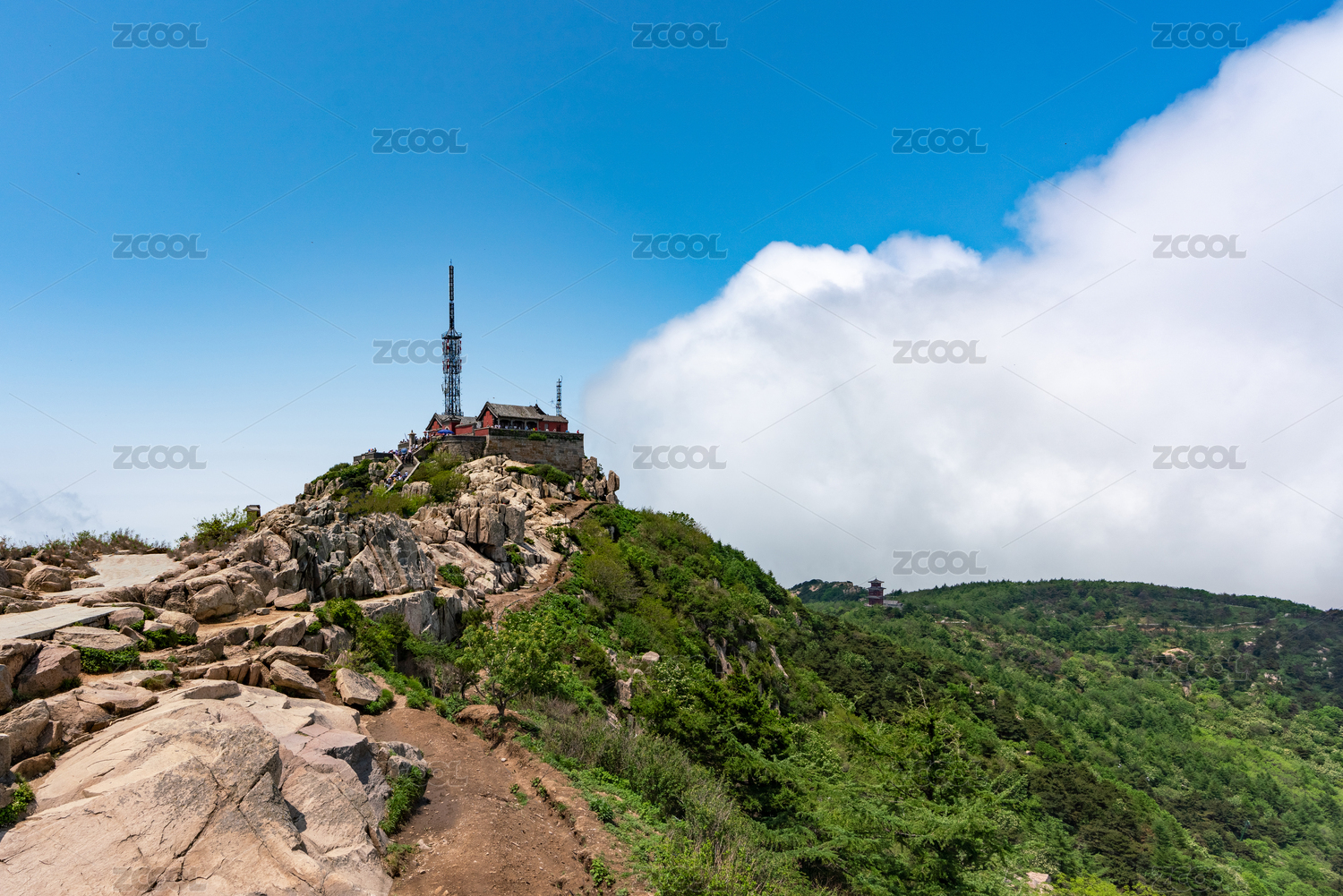 泰山极顶风光蓝天白云