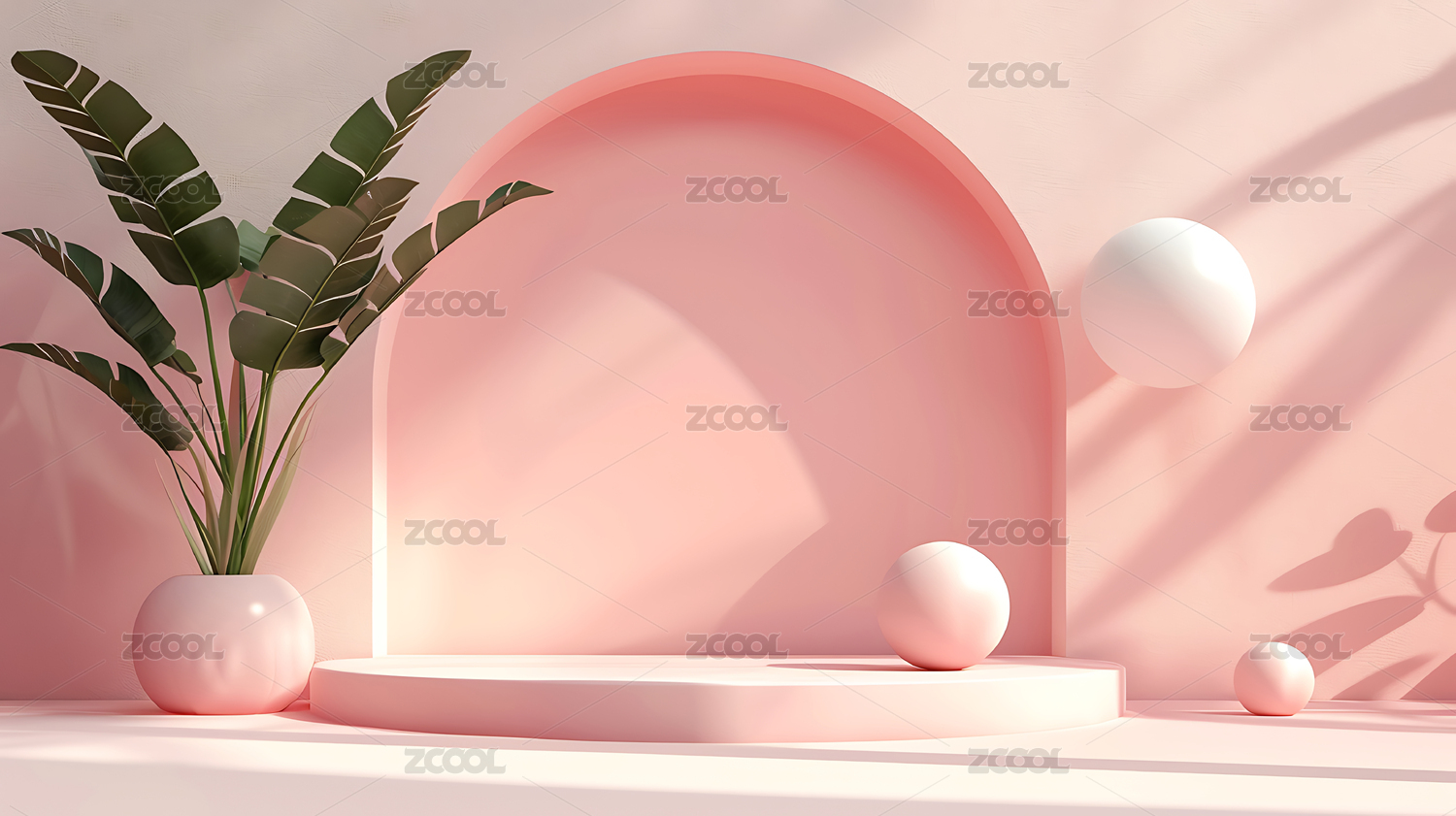 电商,展台,白色,绿植,简约,极简,装饰,空间,背景,摄影