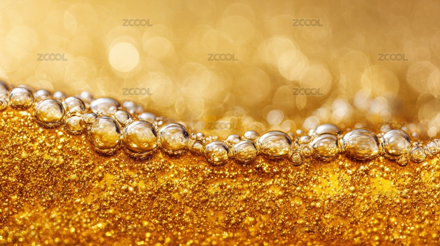 模糊渐变背景下液体中的抽象油滴,金色油滴