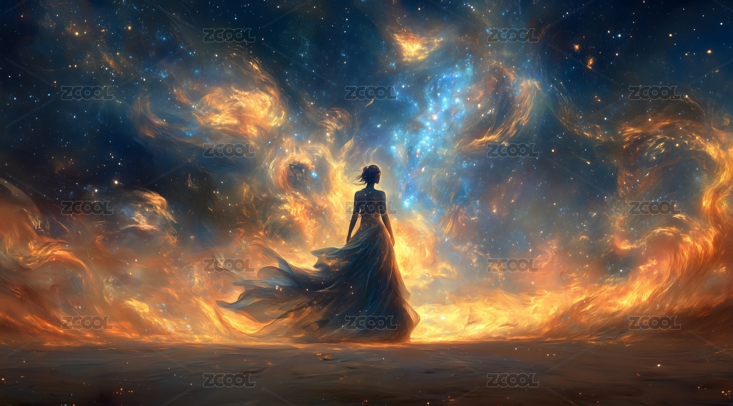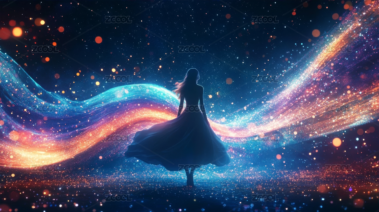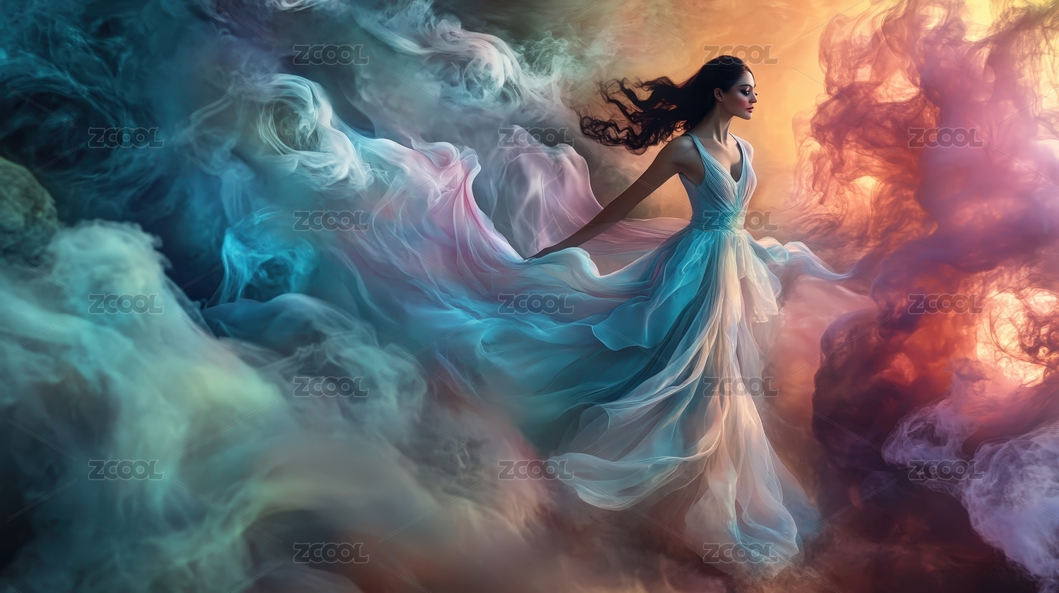 超现实主义跳舞者裙纱飘扬的唯美场景