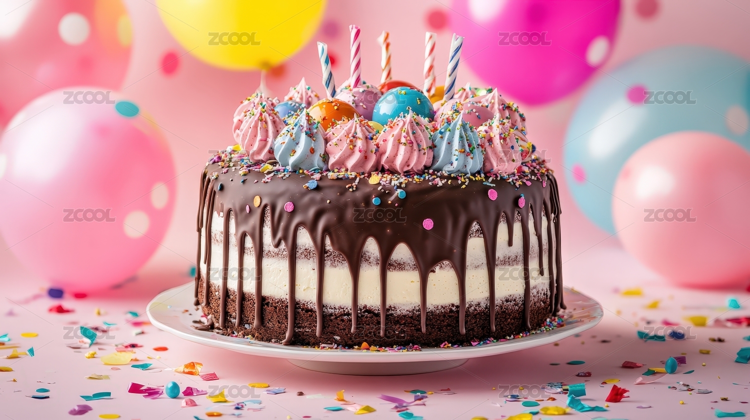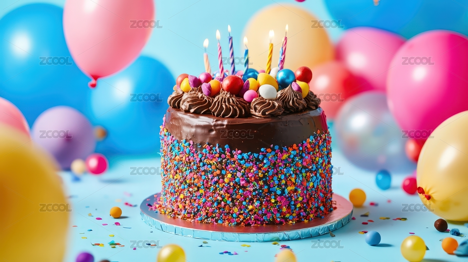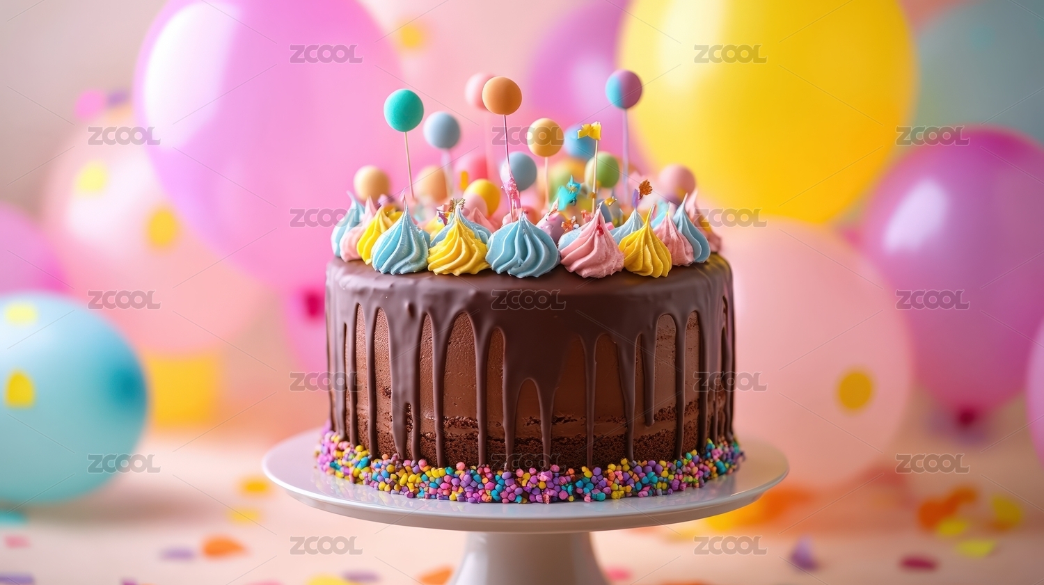 生日蛋糕与多彩气球