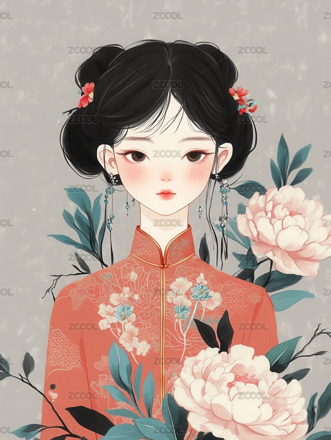 中国古典风格女孩插画