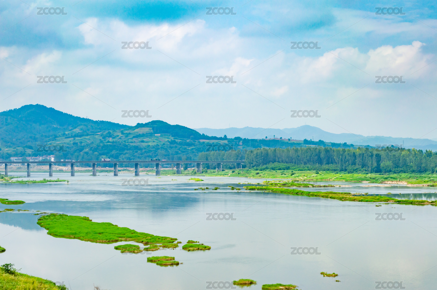 汉江,河流,湿地,草地,自然,蓝天,白云,白天,长江,支流